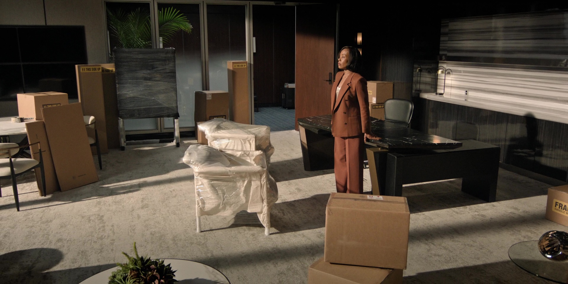 A video clip from the Confidence Queen episode “Their First Encounter”. Park Min-young plays the character Yoon Yi-rang in the South Korean series. She wears a satin and lace robe with a satin nightgown.