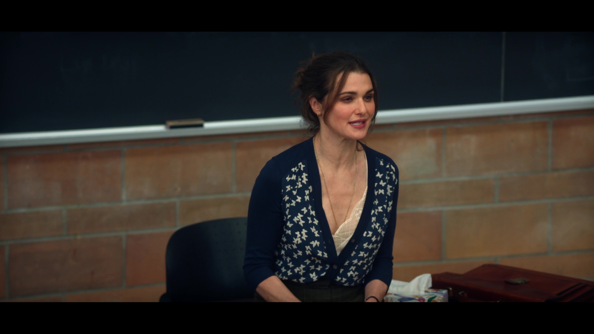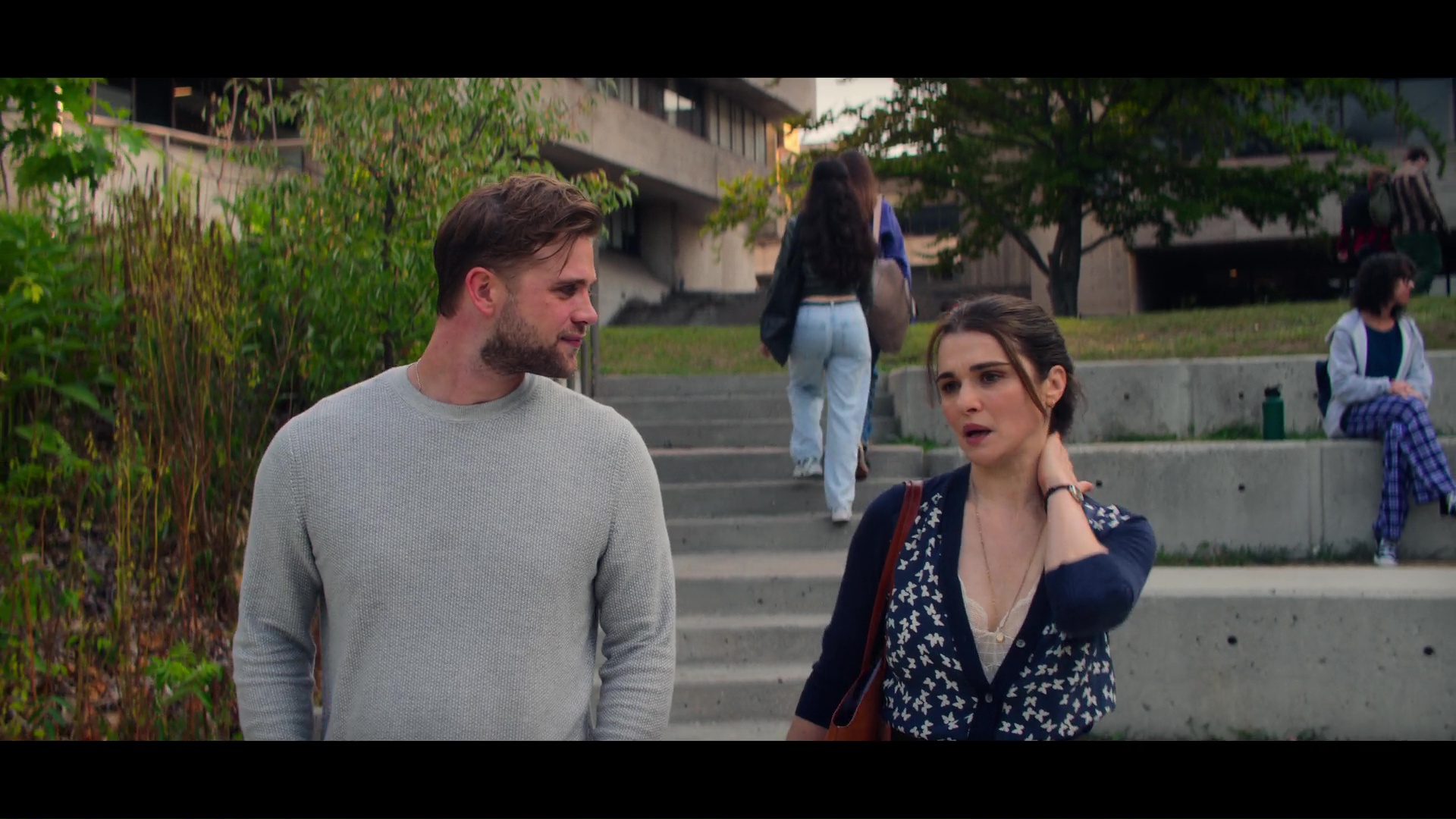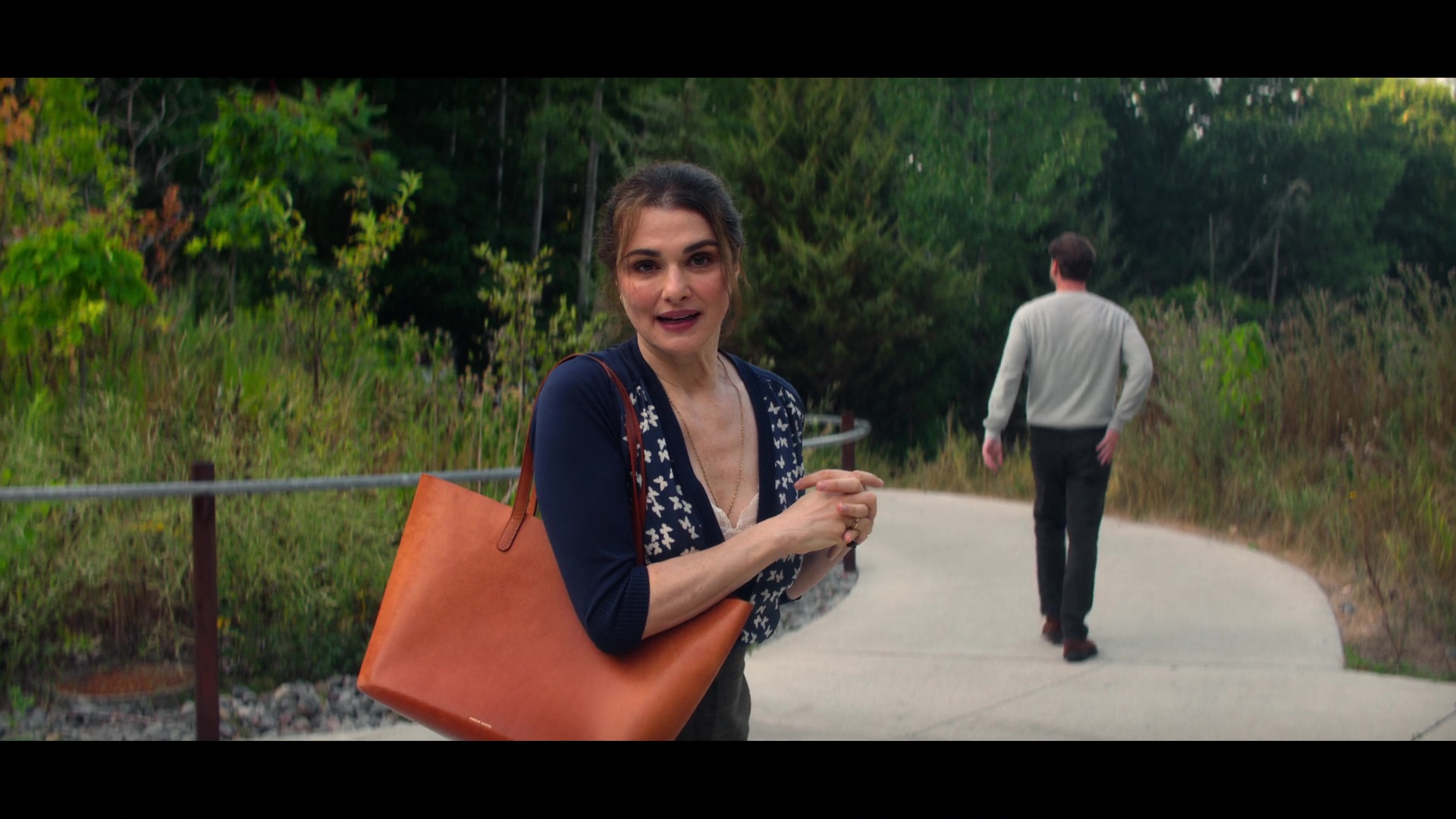 Vladimir screencaps from the “Play It As It Lays” limited run television show. Rachel Weisz stars in a satin and lace camisole top. She plays the character M in the Netflix comedy drama series.