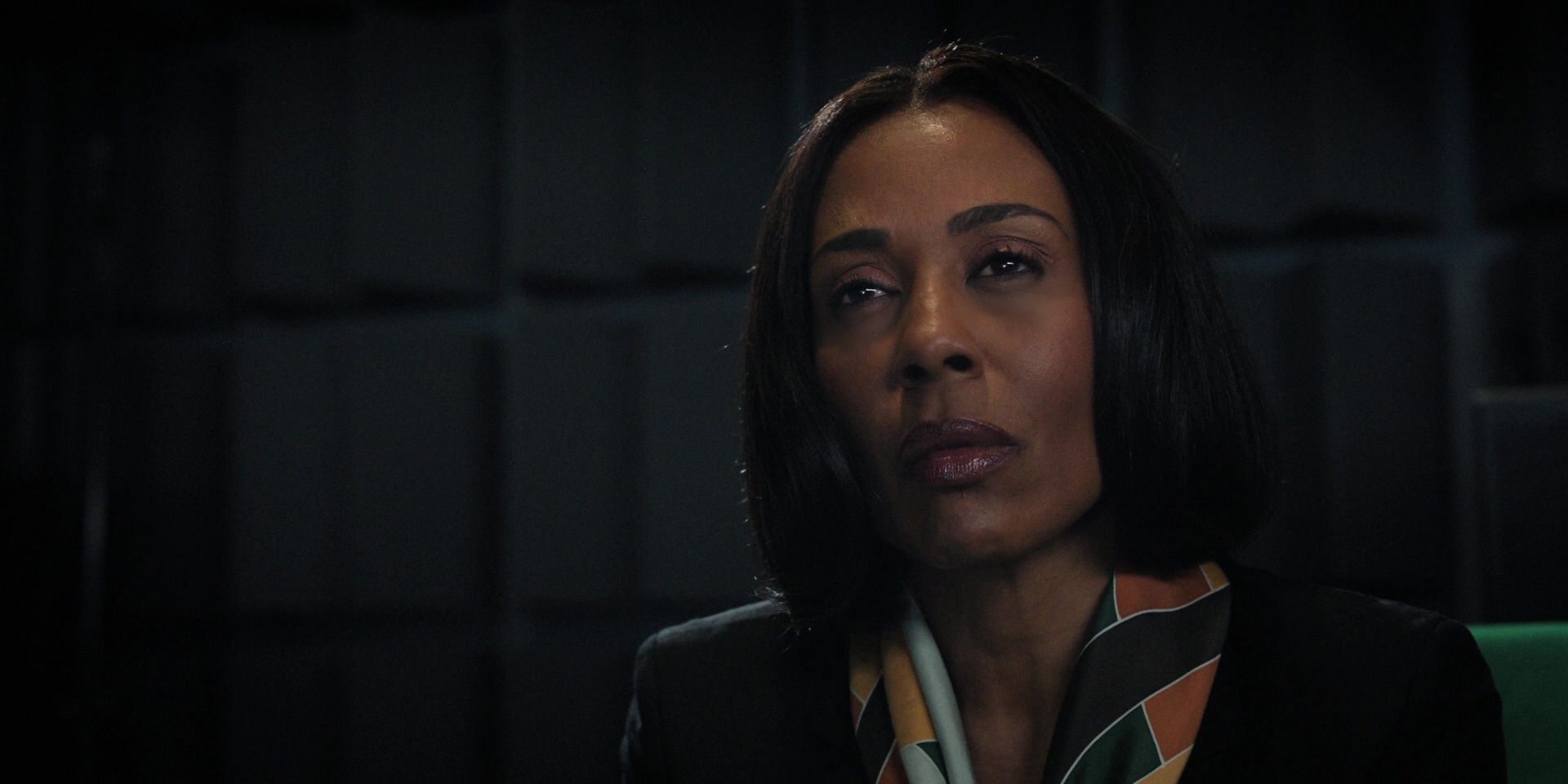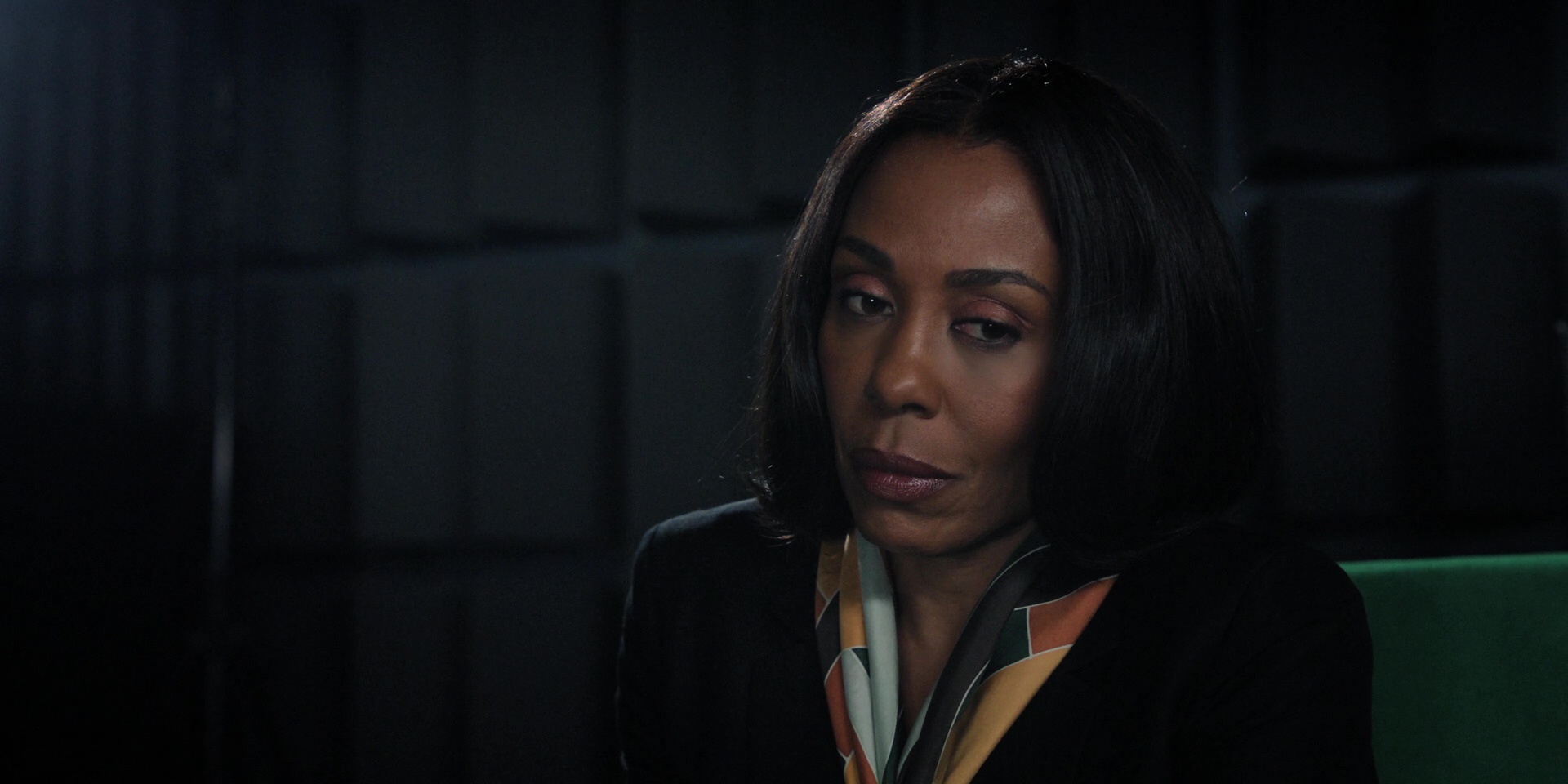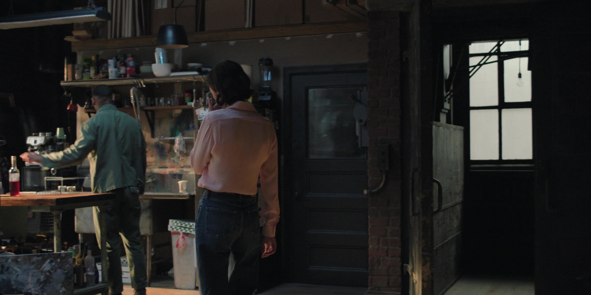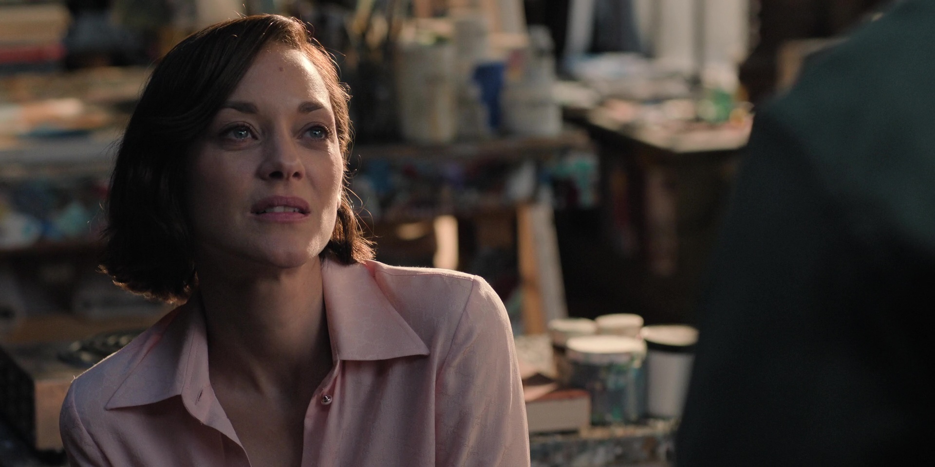 The Morning Show screencaps from season four of the Apple TV show. Karen Pittman wears a silk satin scarf. Marion Cotillard appears in a silk blouse. They star in the episode “If Then”.