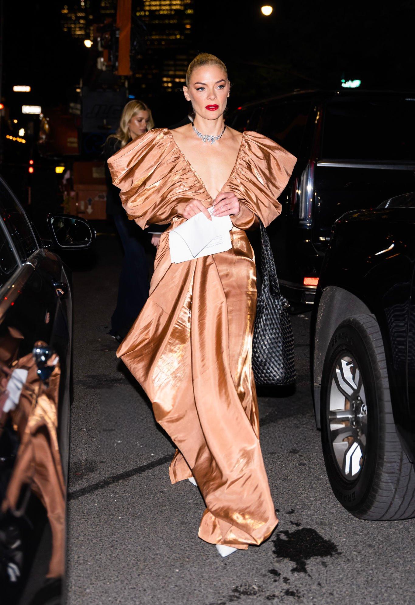 A gallery of Jaime King pictures and images taken at the 2022 DKMS Gala. Jaime is seen in a sheeny satin like jumpsuit. She appears in satin at the charity event held in New York City.