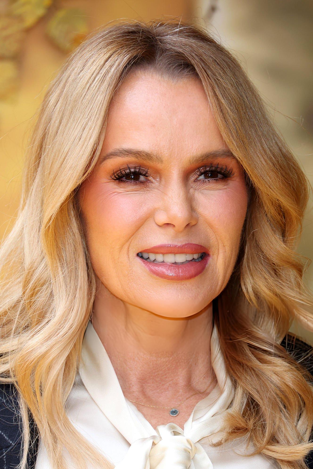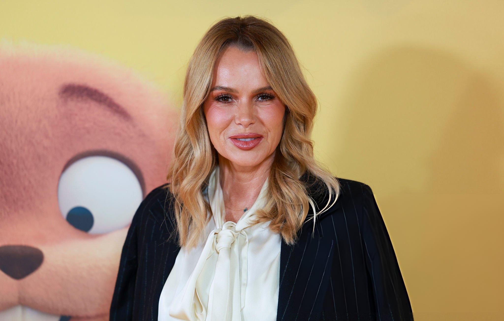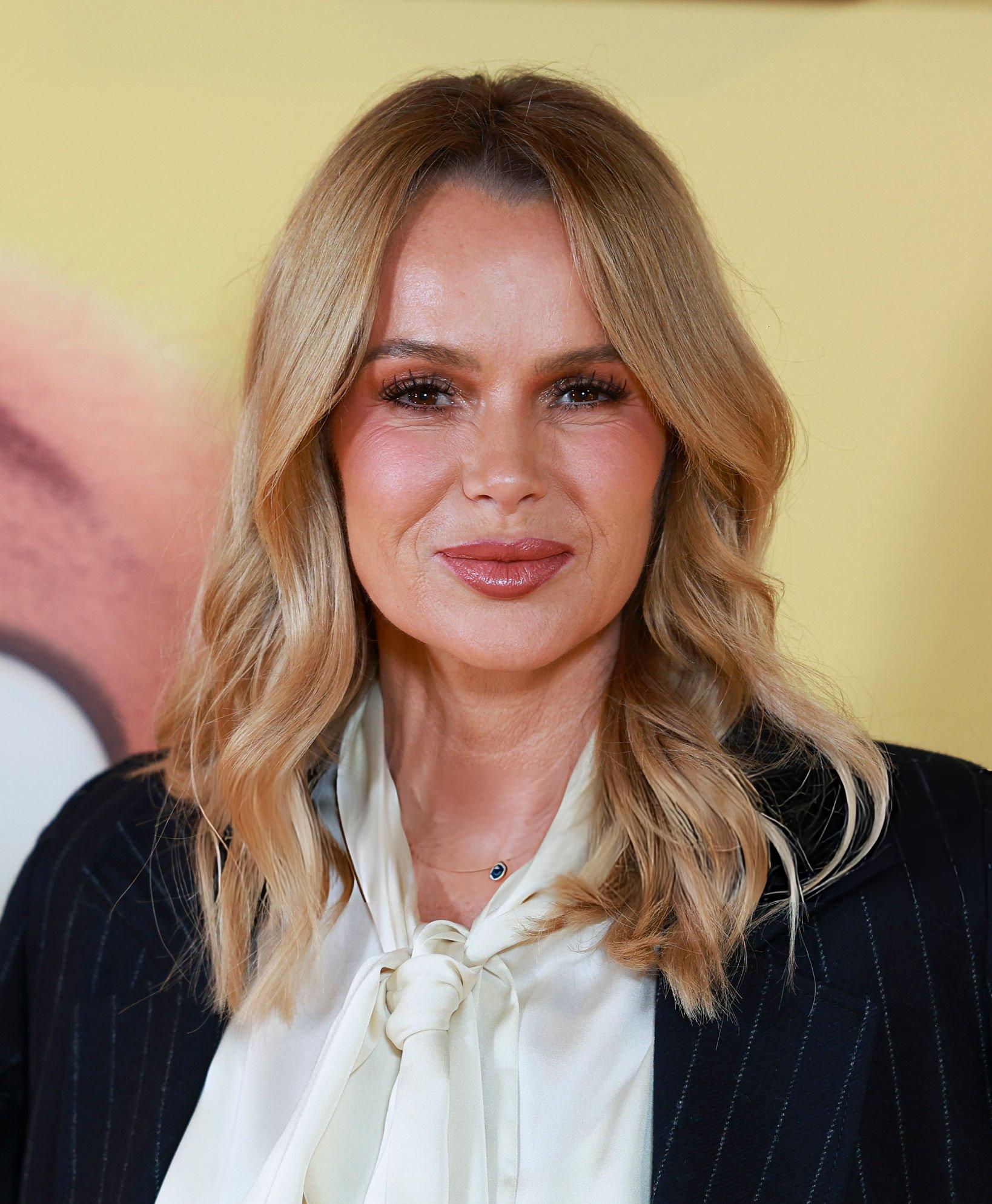Amanda Holden photos and images taken at the premiere of Hoppers. Amanda wears a white satin and silk bow blouse. She is seen in satin at Vue West End on the 1st March 2026.