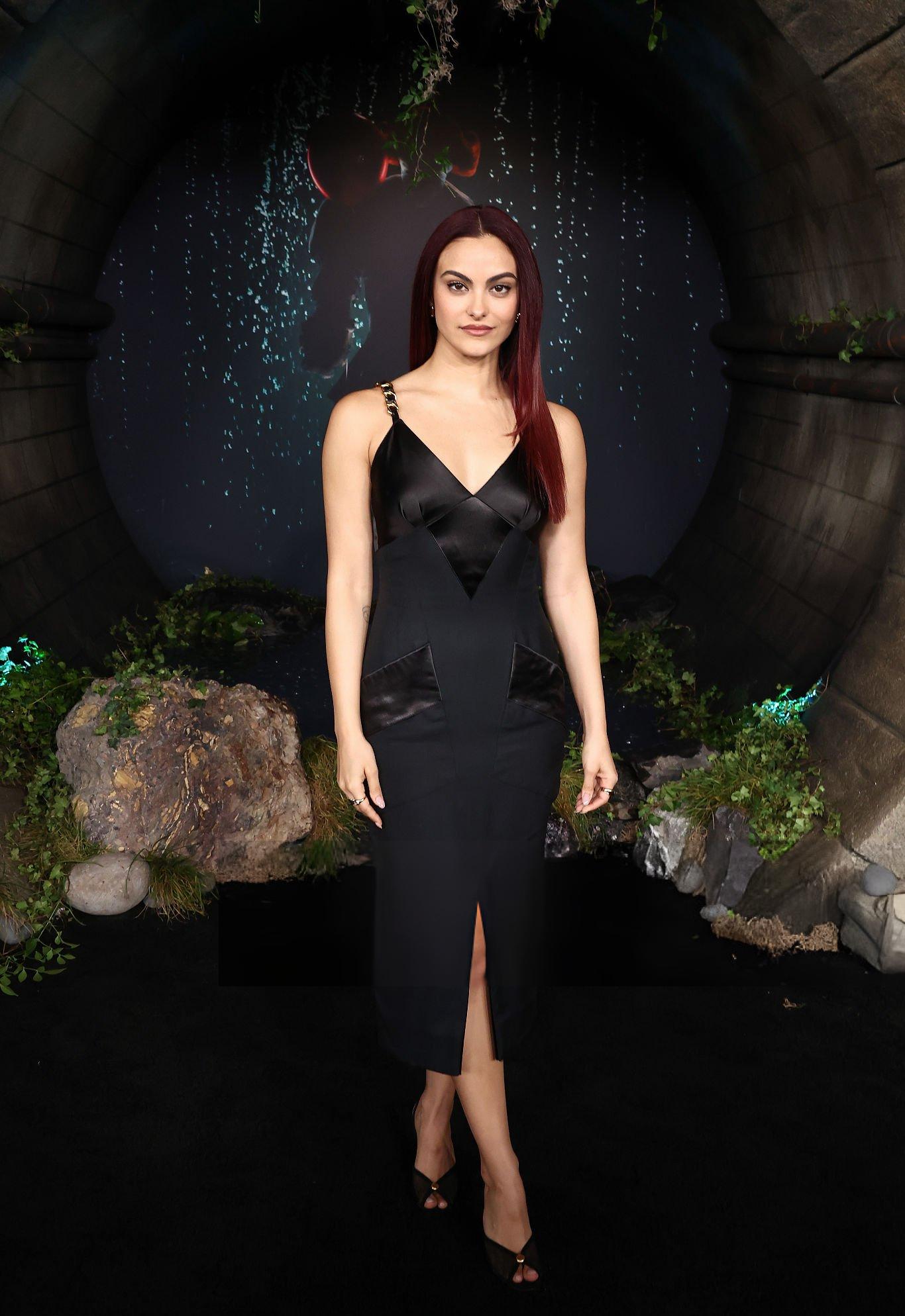 Camila Mendes images and photos taken at the premiere of IT: Welcome To Derry. Camila is seen in a black part satin dress. She stars in satin at Warner Bros. Studios on the 20th October 2025.