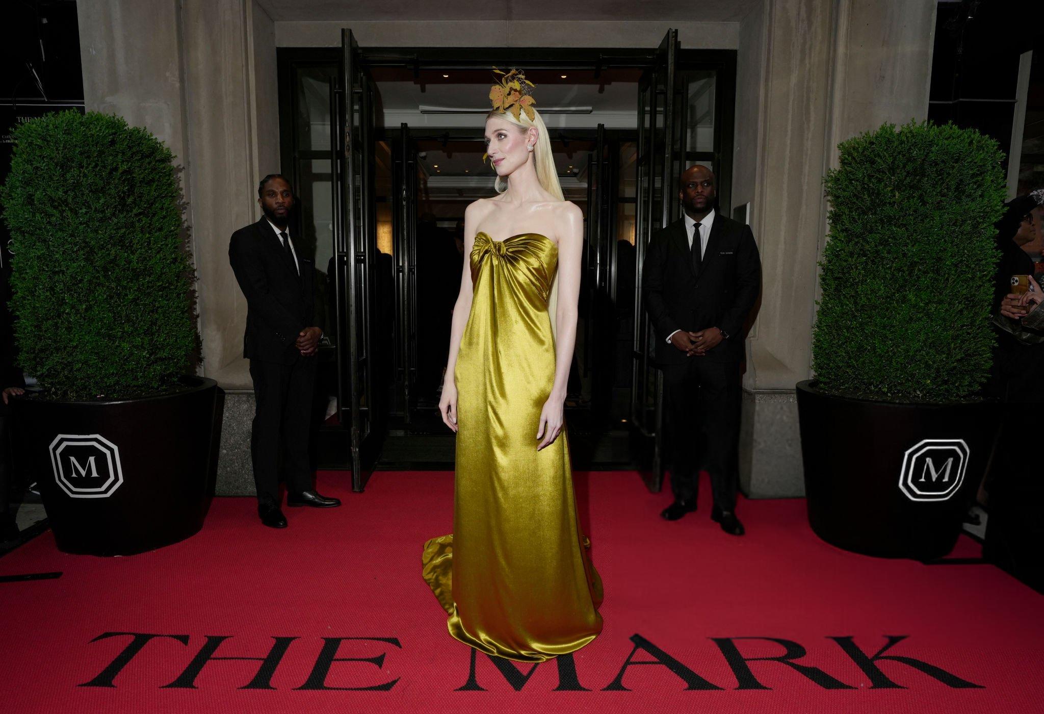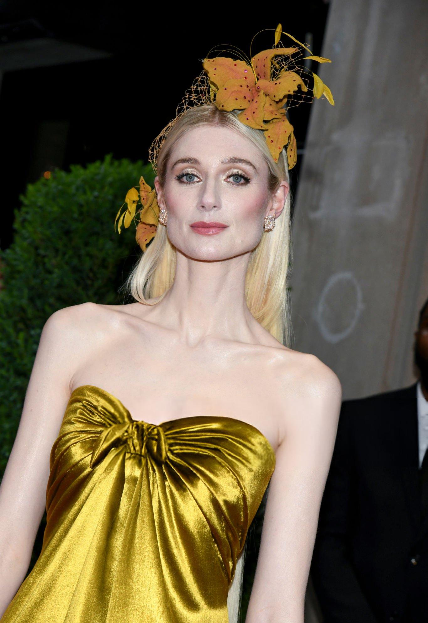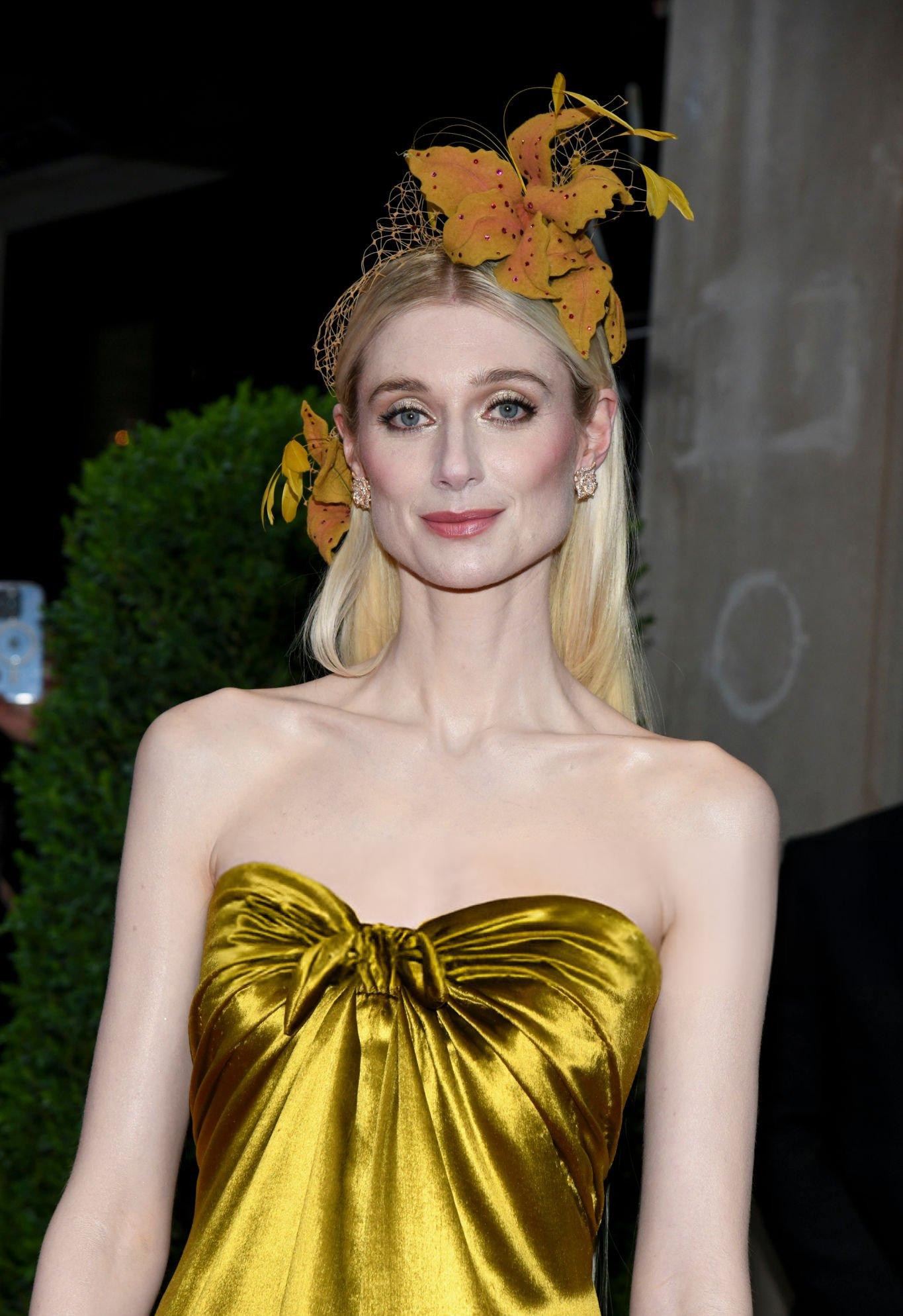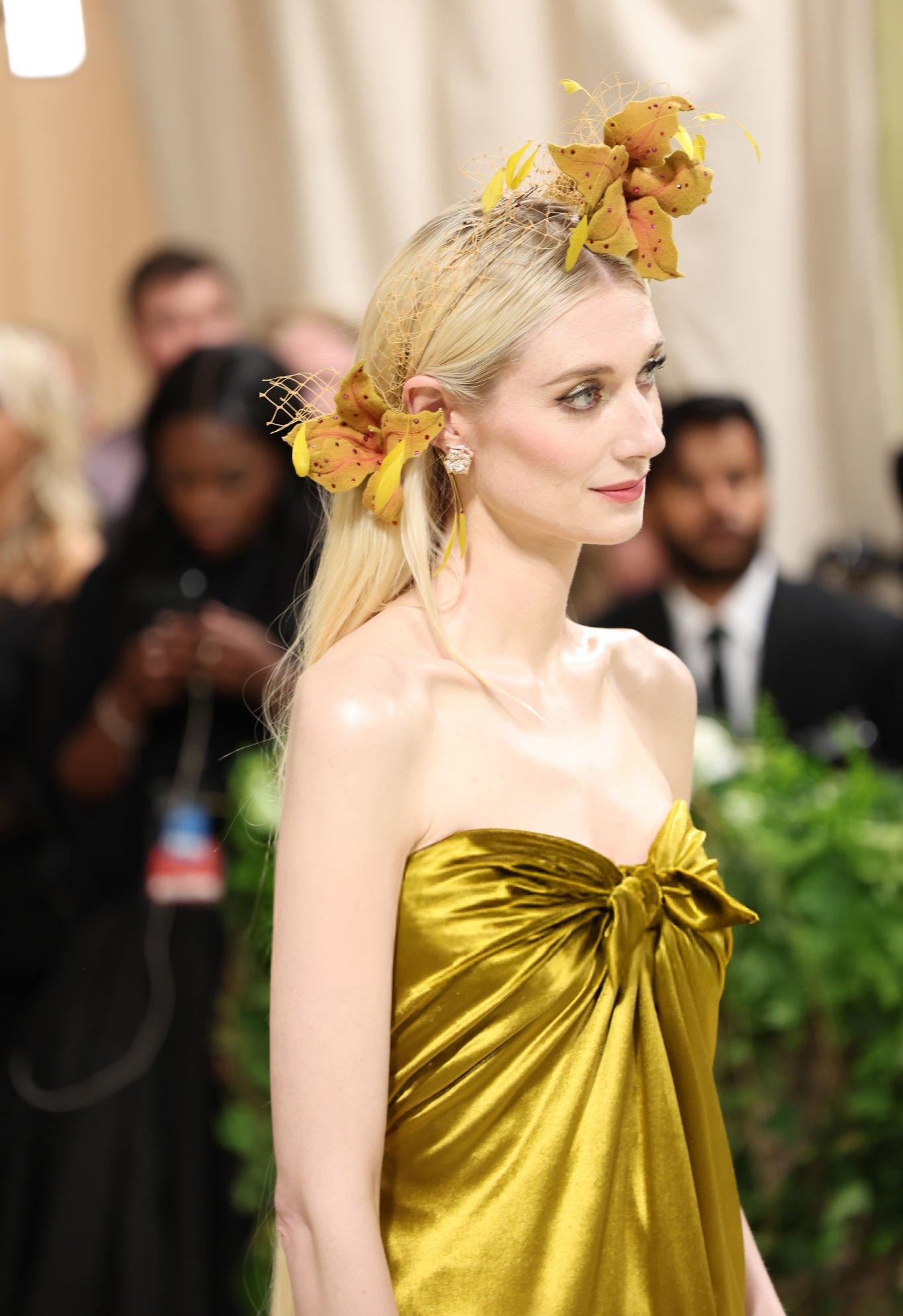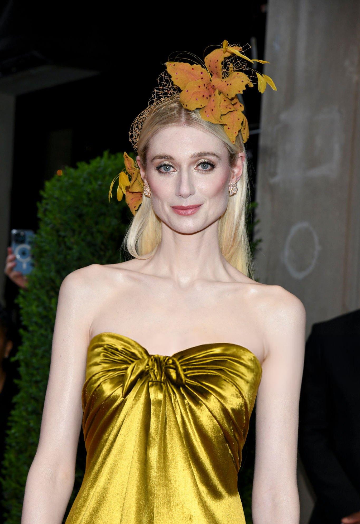 Elizabeth Debicki 2024 Met Gala images and pictures. Elizabeth is seen in a dark gold strapless satin gown. She stars in satin at The Metropolitan Museum Of Art on the 6th May 2024.