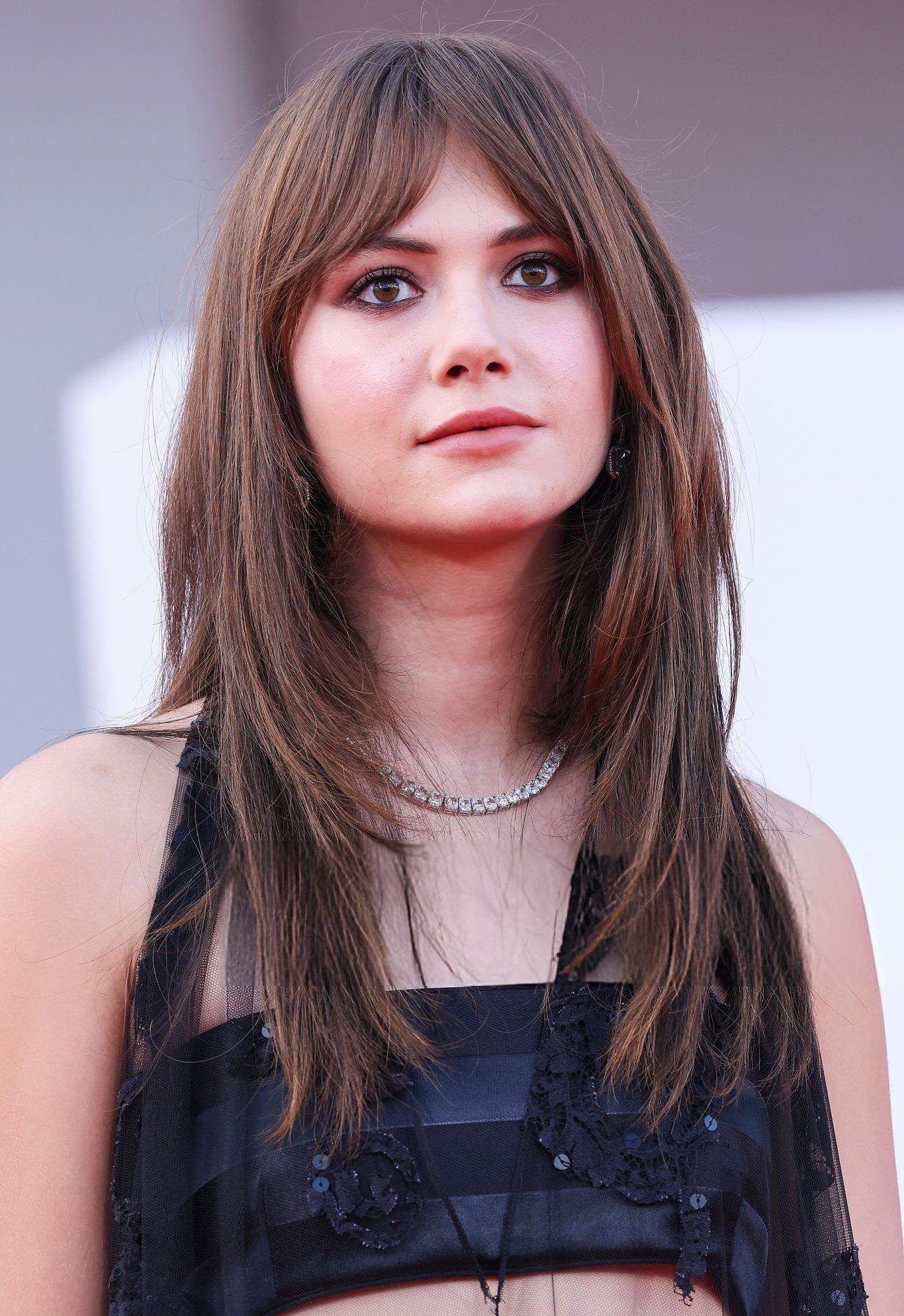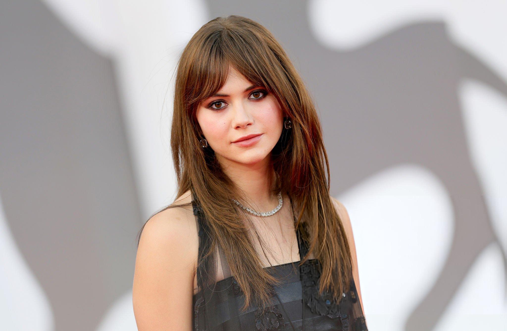 Emilia Jones images and pictures taken at the Frankenstein Red Carpet event. Emilia is seen in a black satin band bralette. She stars in satin and silk in Venice on the 30th August 2025.