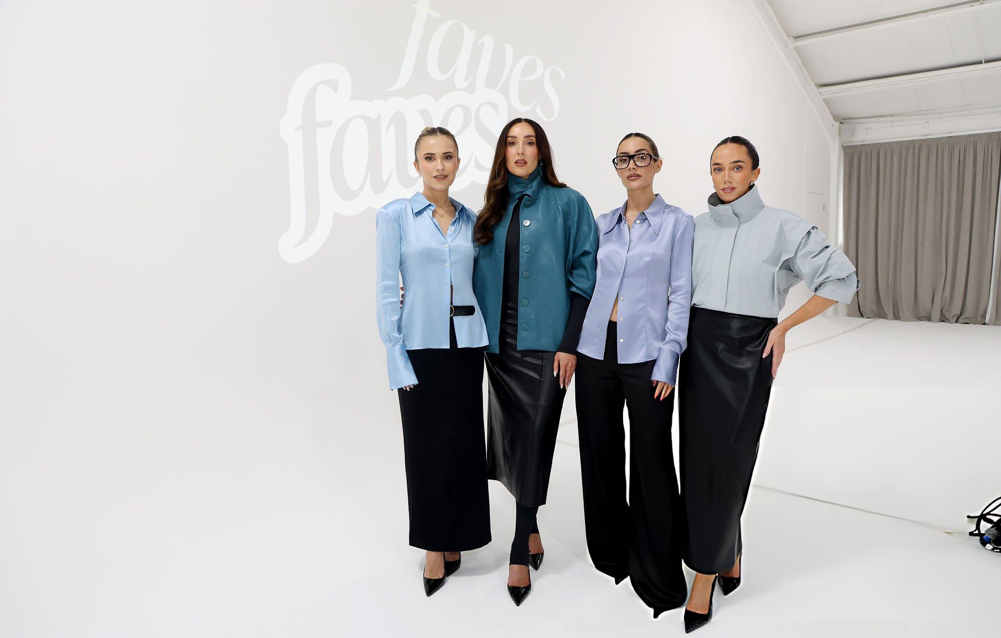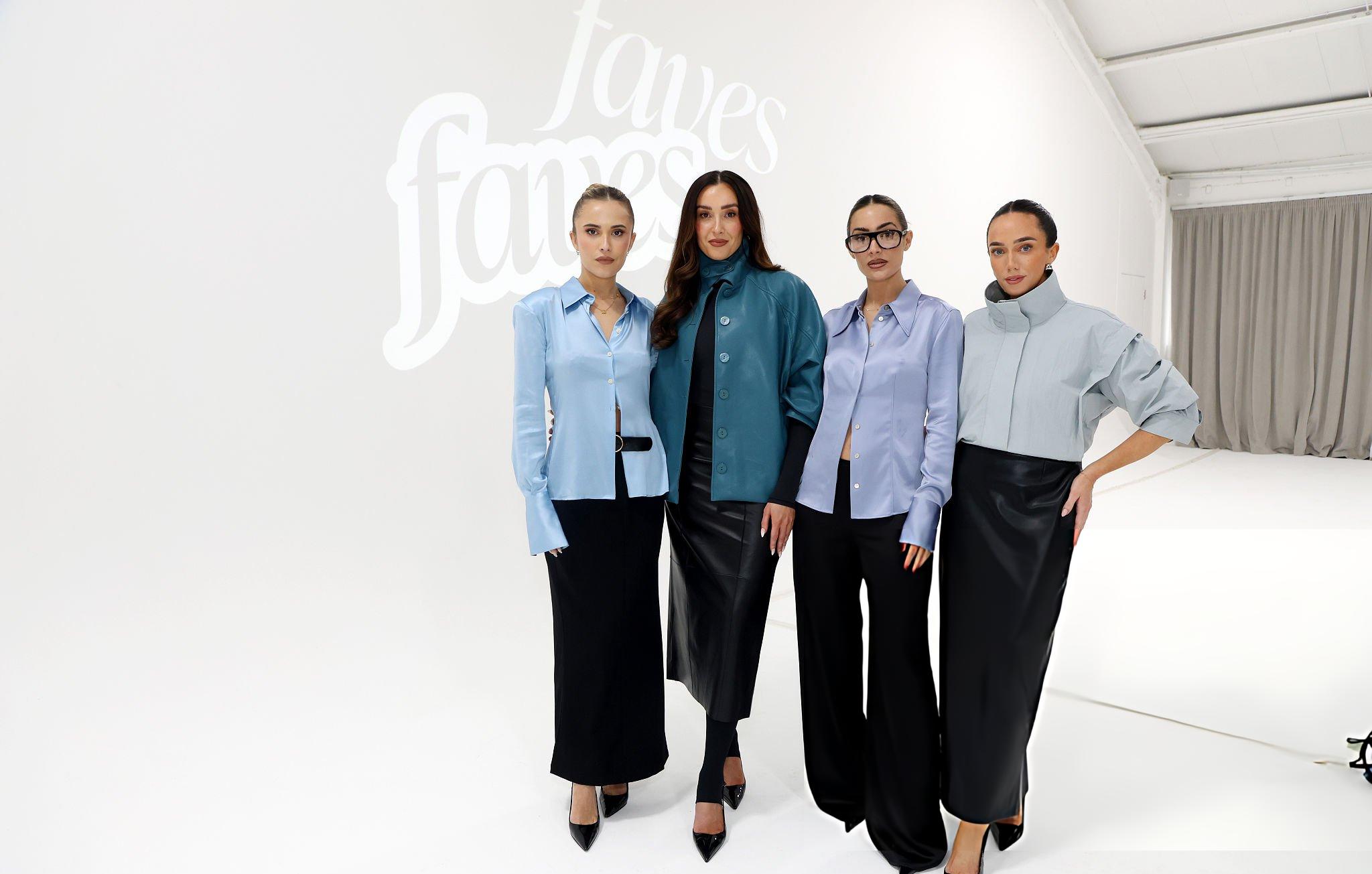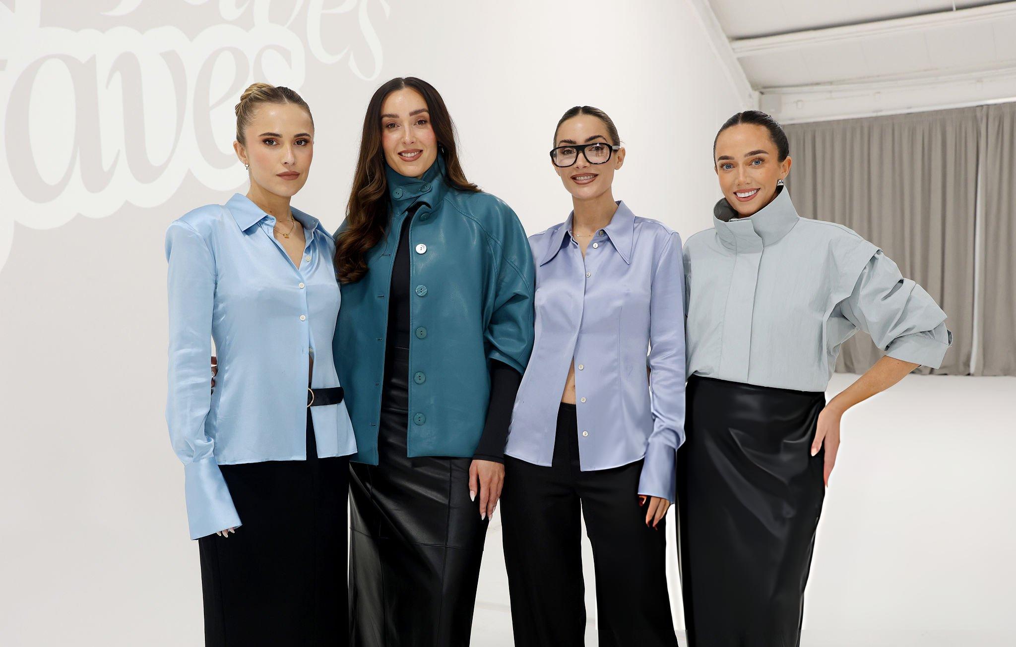 Images and pictures of Frankie Bridge at the Faves Live The Runway. Frankie is seen in a light blue long sleeve satin blouse. She stars in satin in London on the 21st February 2026.