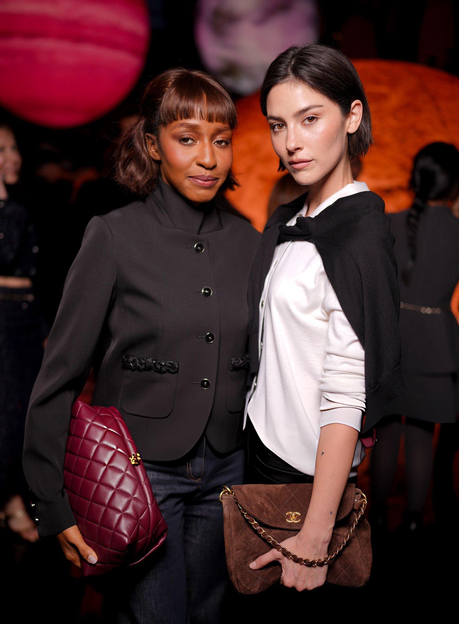 Gracie Abrams photos and images taken at Chanel: Front Row during Paris Fashion Week. Gracie wears a white top with a pair of black satin trousers. She appears in satin on the 6th October 2025.