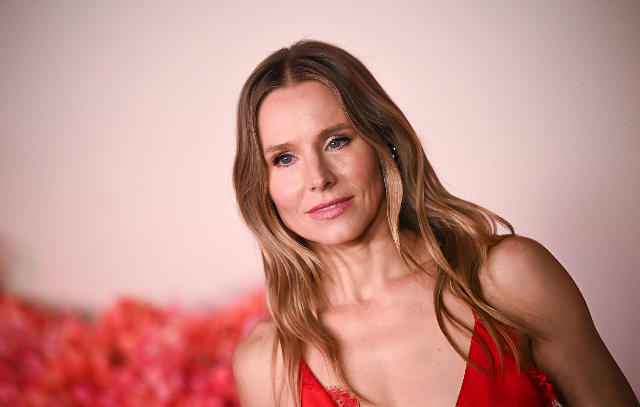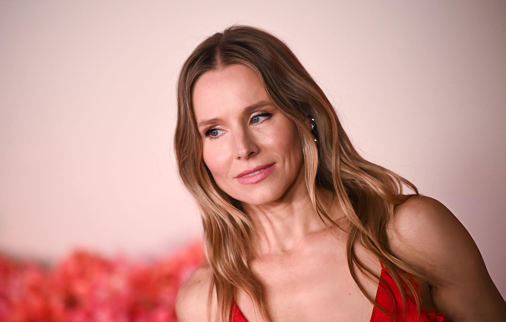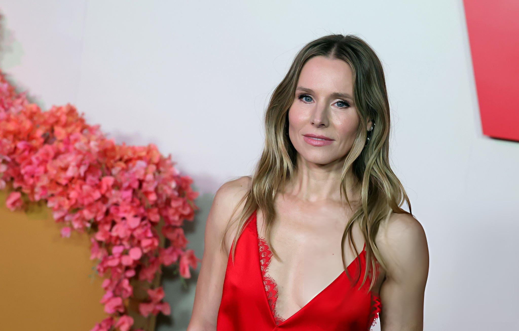 Kristen Bell photos and images taken at the season two premiere of Nobody Wants This. Kristen wears a red satin and lace dress. She stars in satin at The Egyptian Theatre on the 16th October 2025.