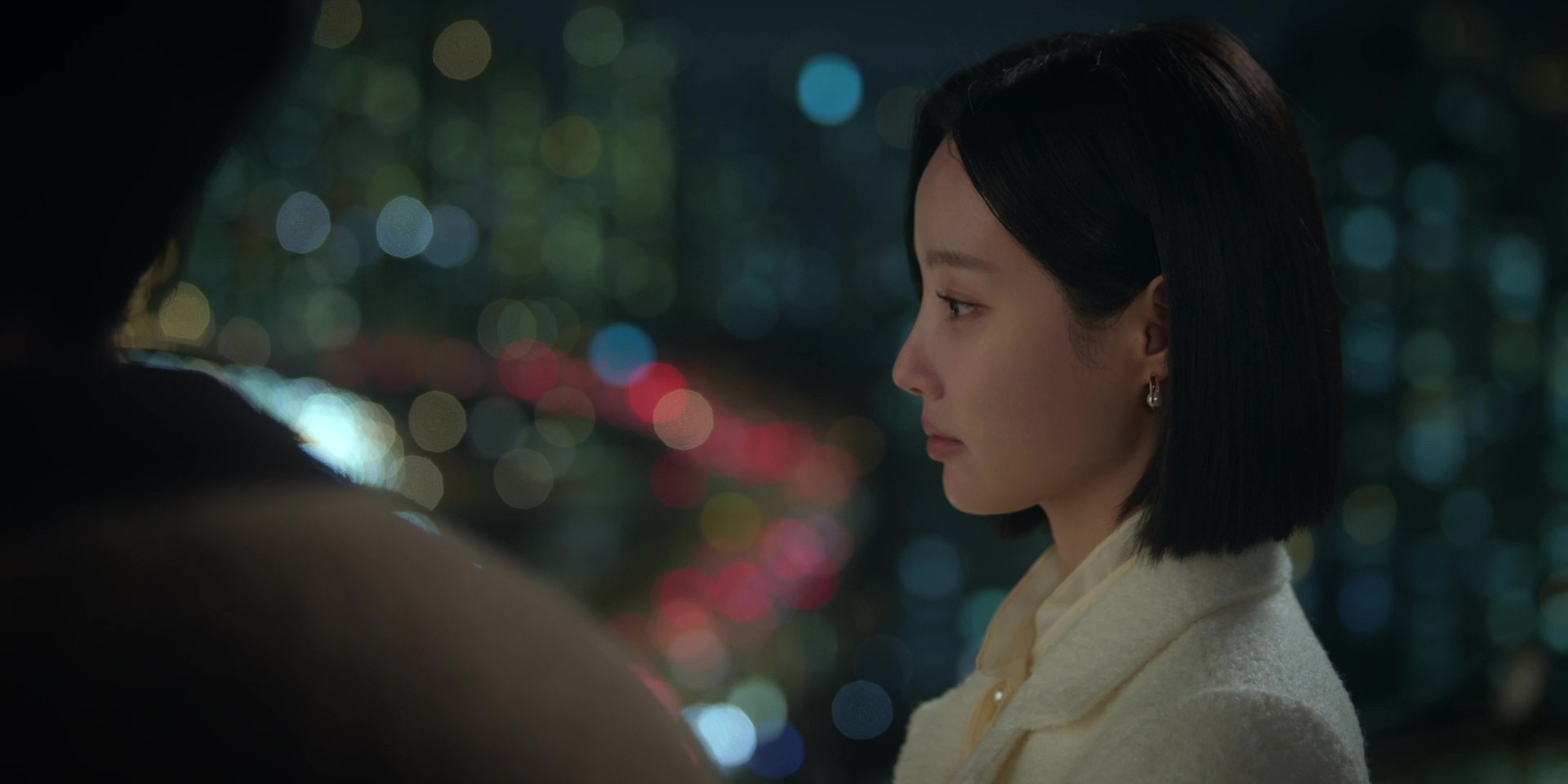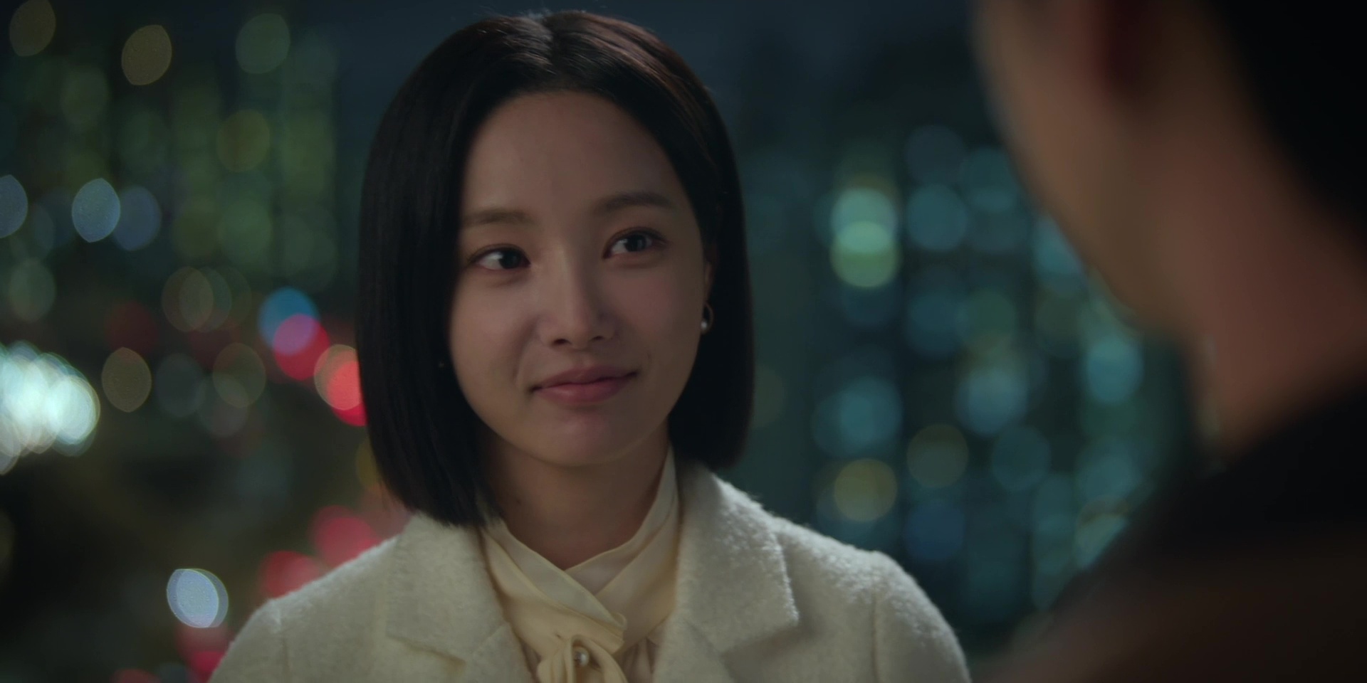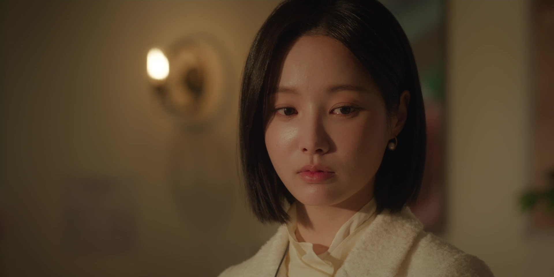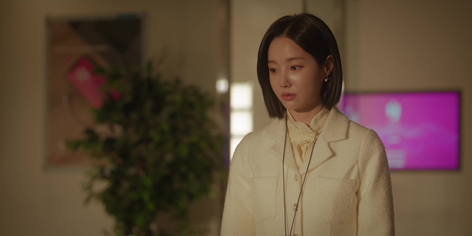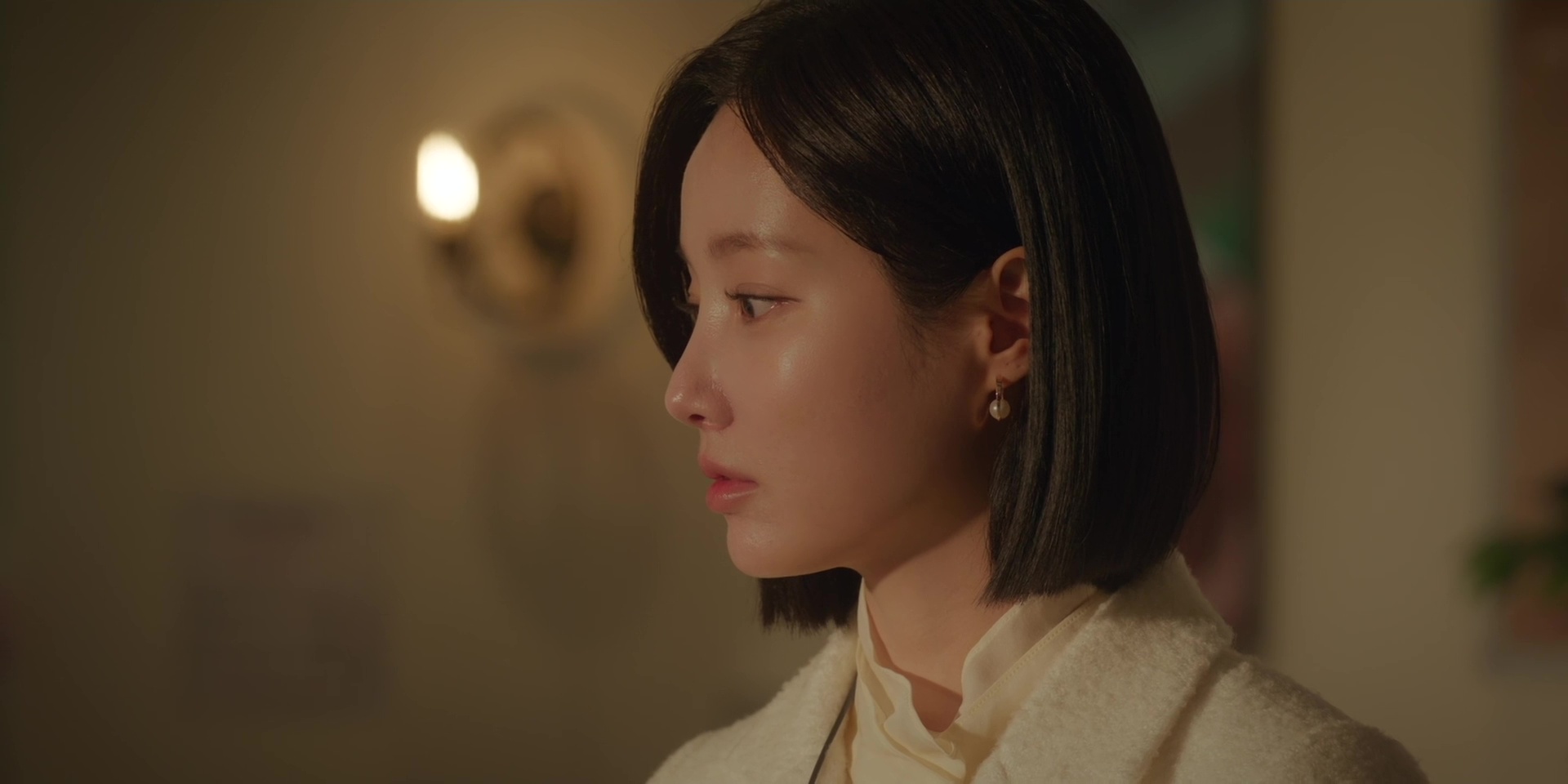 Love Phobia screen captures from the eighth episode of the South Korean show. Yeonwoo stars as the character Kim Bi-ah in the romantic drama. She wears a long white coat over a cream silk top.