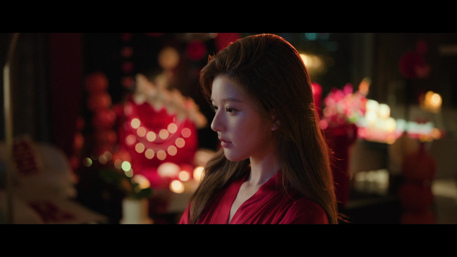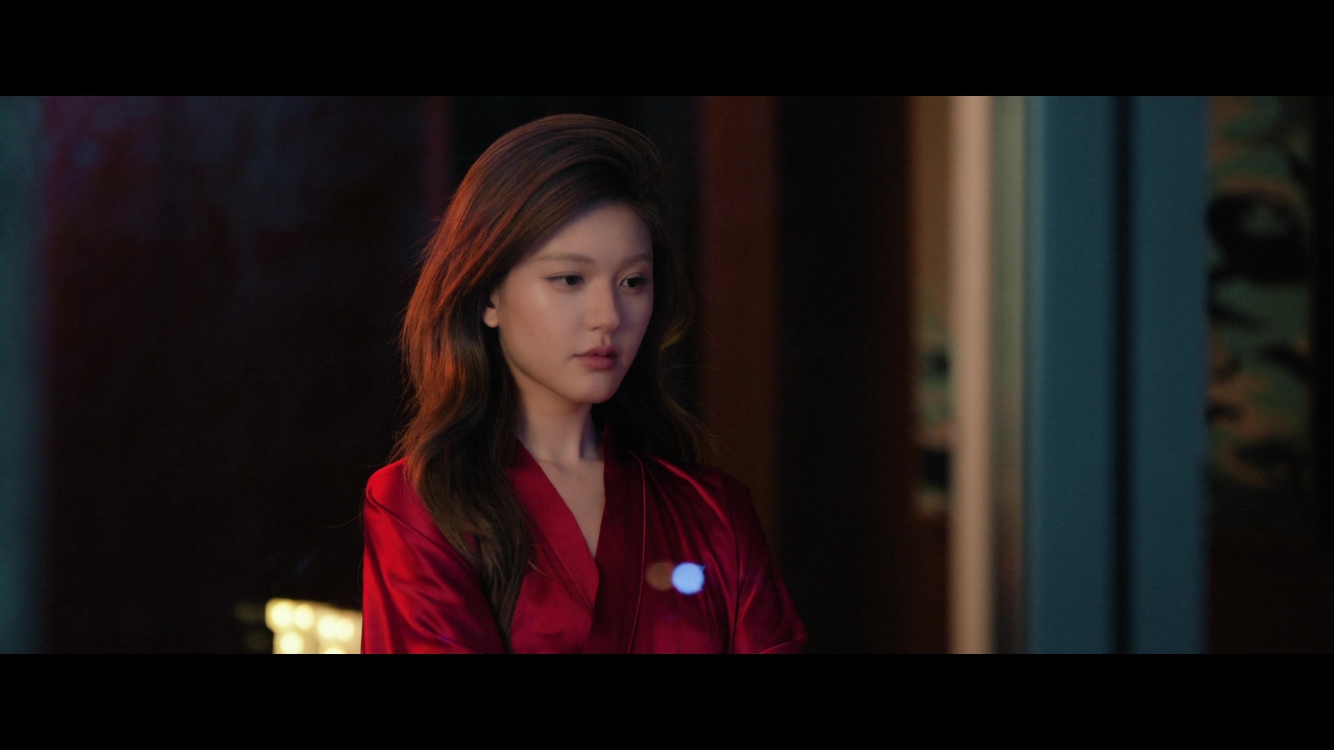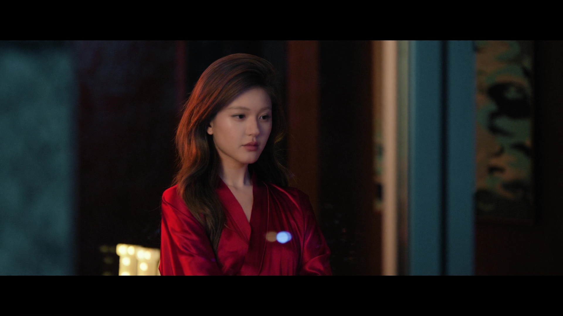 Screencaps from the sixth episode of the Chinese drama Loves Ambition. Zhao Lusi stars as the character Xu Yan. She is seen in red satin nightwear, a grey satin top with satin skirt and a green silk maxi dress.