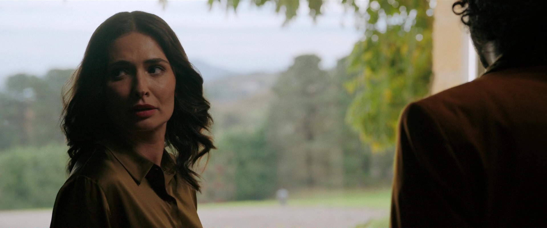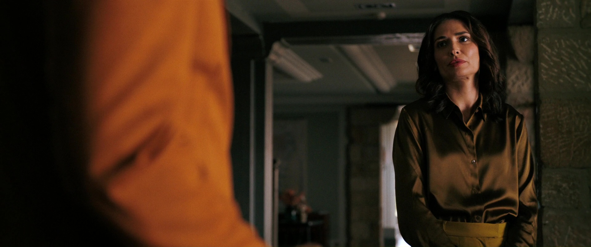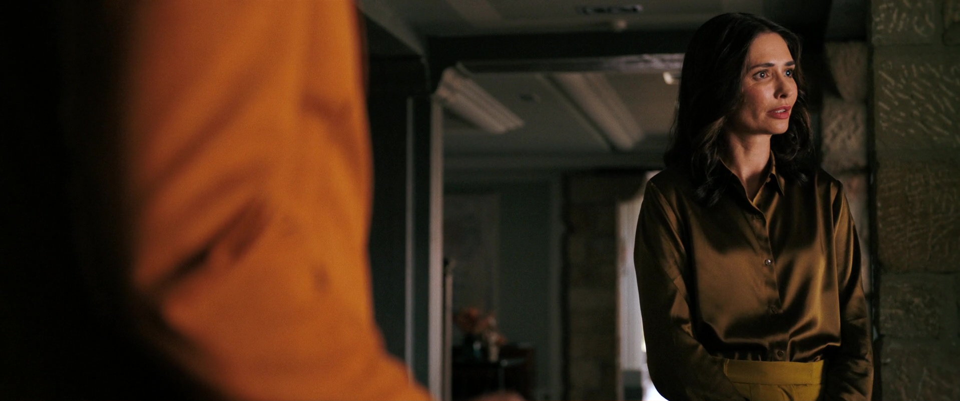 Pluribus Pirate Lady 2Pluribus screencaps from the season one episode “Pirate Lady”. Karolina Wydra stars as the character Zosia in the Apple TV show. She wears a long sleeve dark olive satin blouse.Satiny – Television – Pluribus – Pirate Lady 1Page 1 2