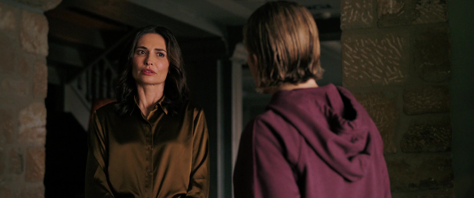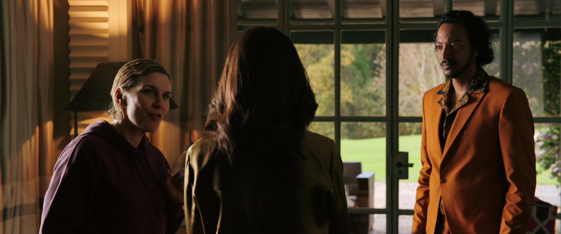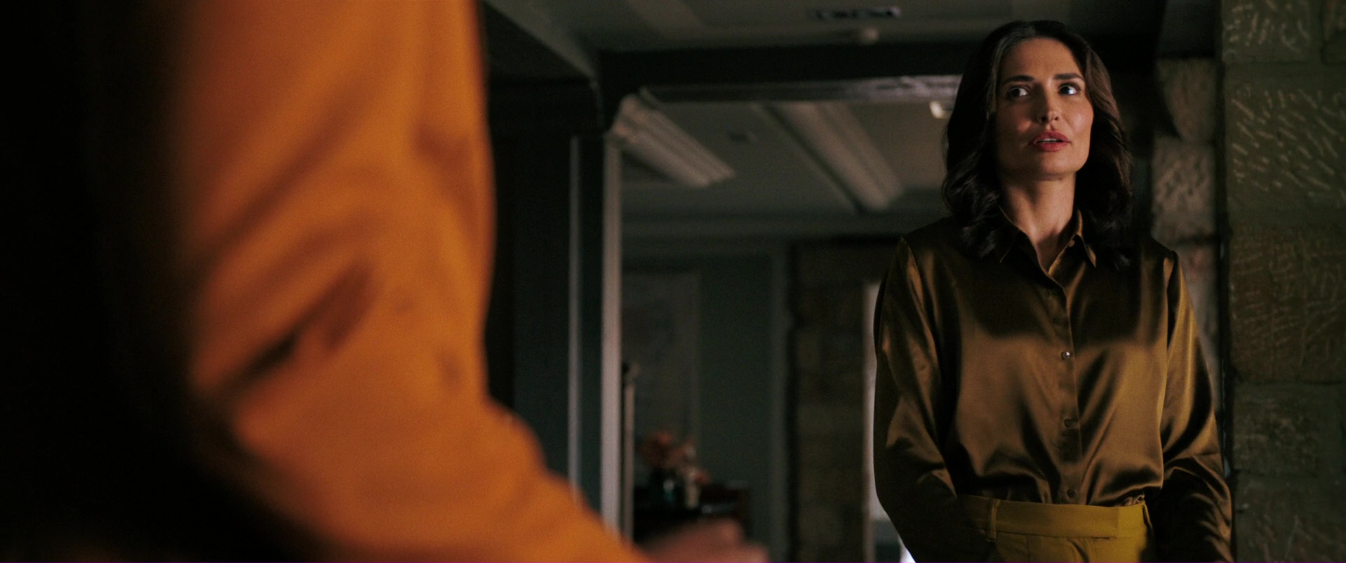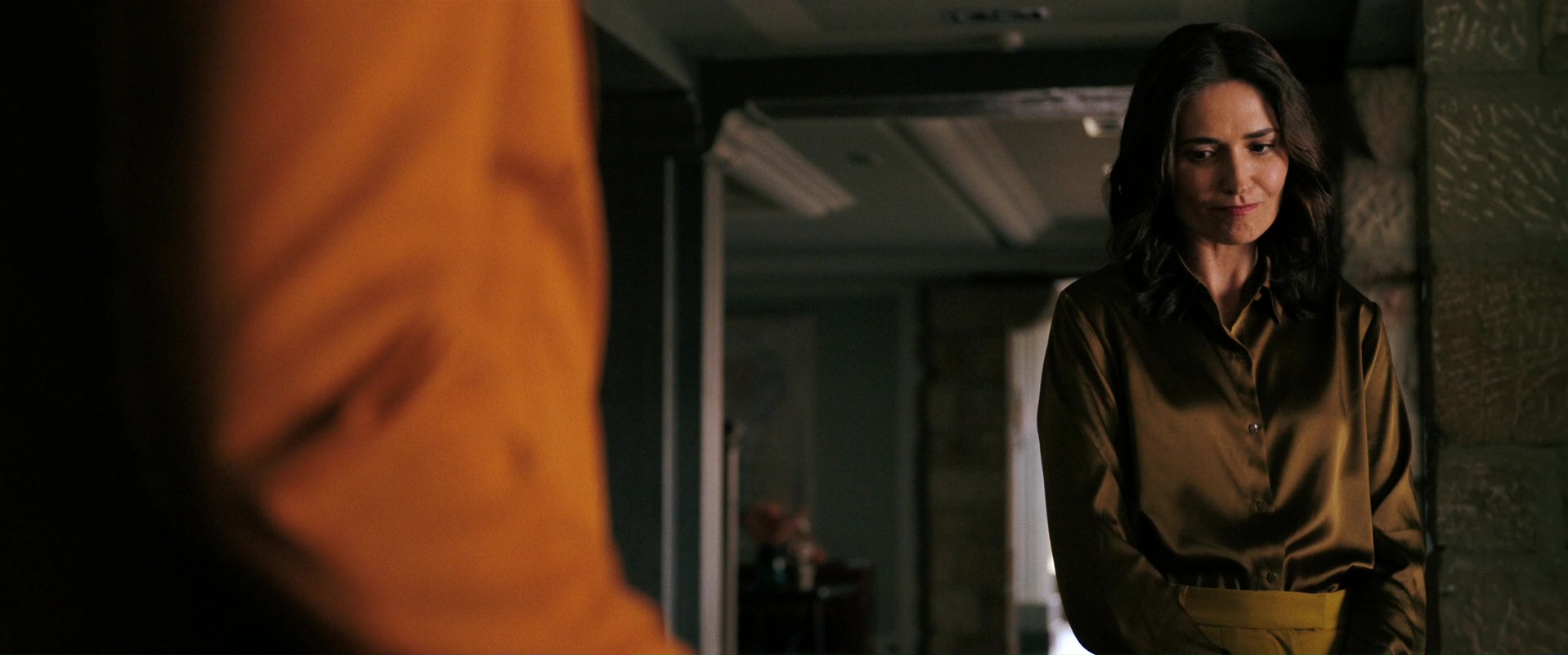 Pluribus Pirate Lady 2Pluribus screencaps from the season one episode “Pirate Lady”. Karolina Wydra stars as the character Zosia in the Apple TV show. She wears a long sleeve dark olive satin blouse.Satiny – Television – Pluribus – Pirate Lady 1Page 1 2
