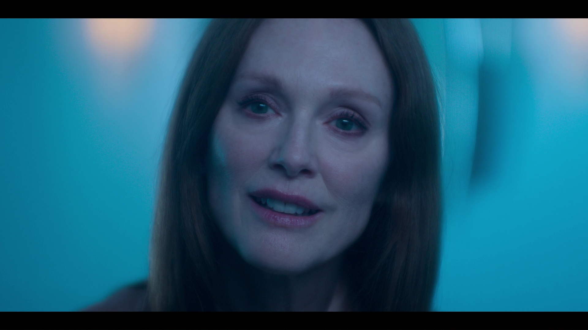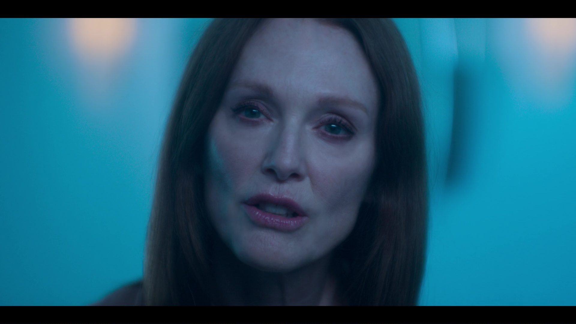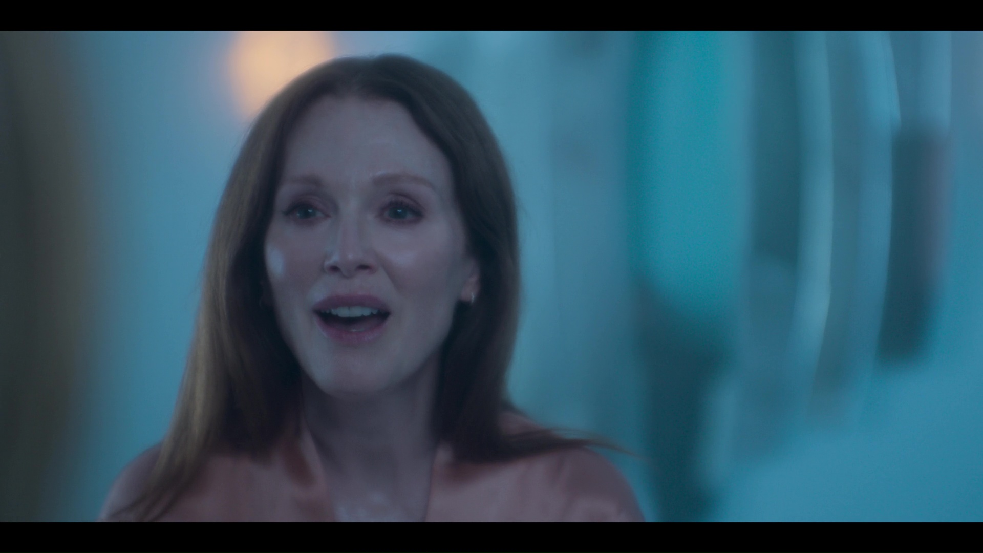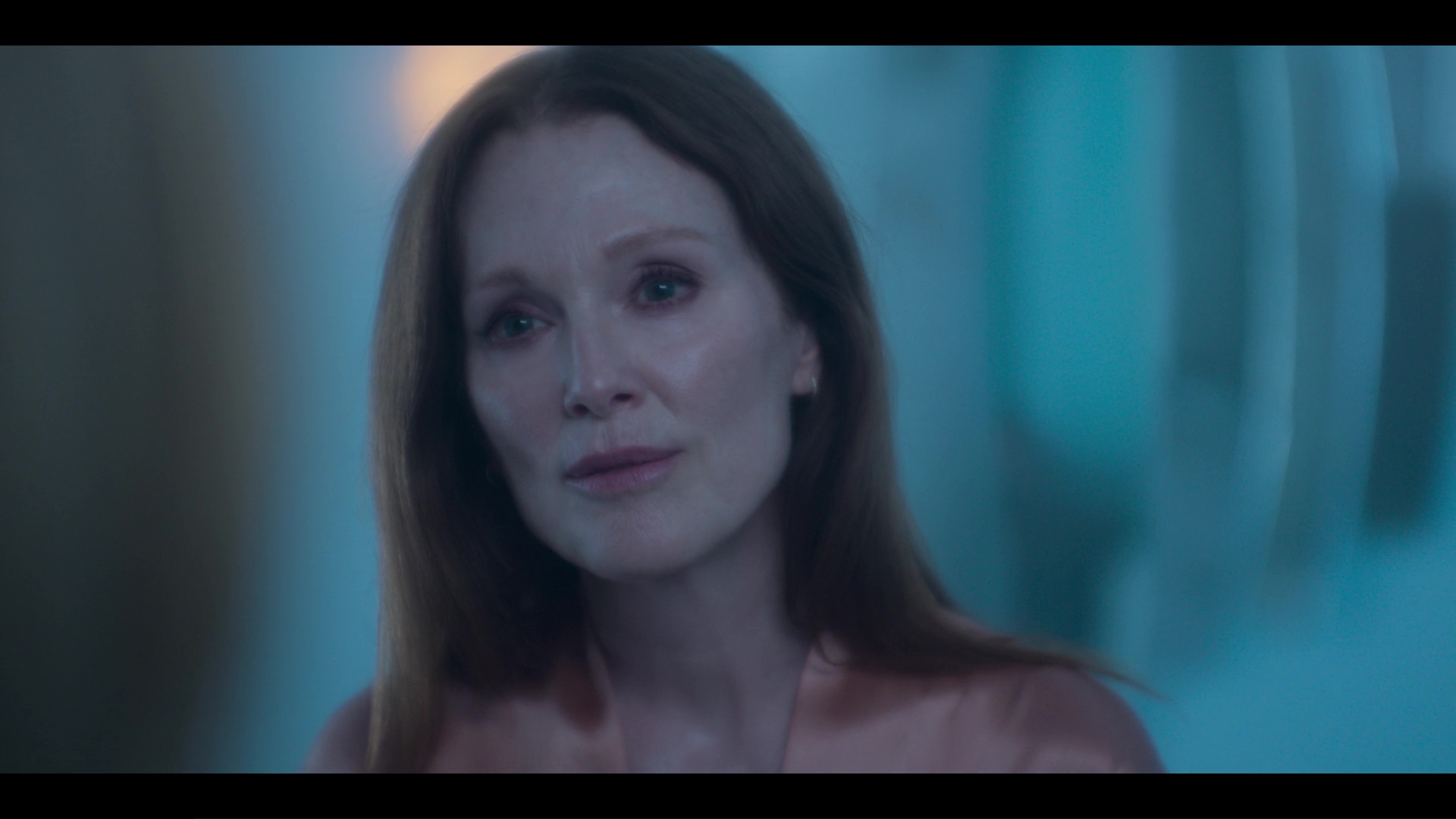 Sirens Monster 2Sirens screencaps from the episode “Monster”. Julianne Moore stars as the character Michaela Kell in the Netflix television series. She wears a long dark peach satin dressing gown.Satiny – Television – Sirens – Monster 1Page 1 2