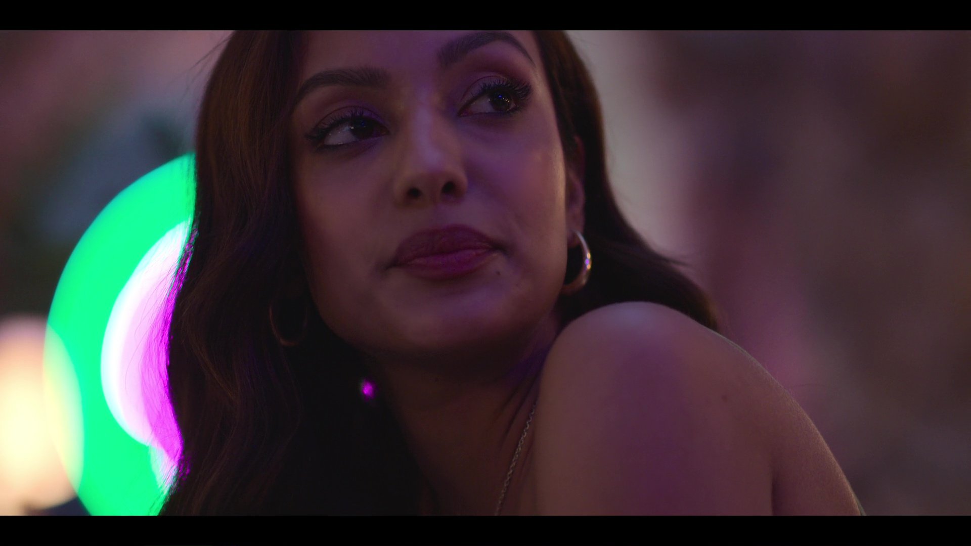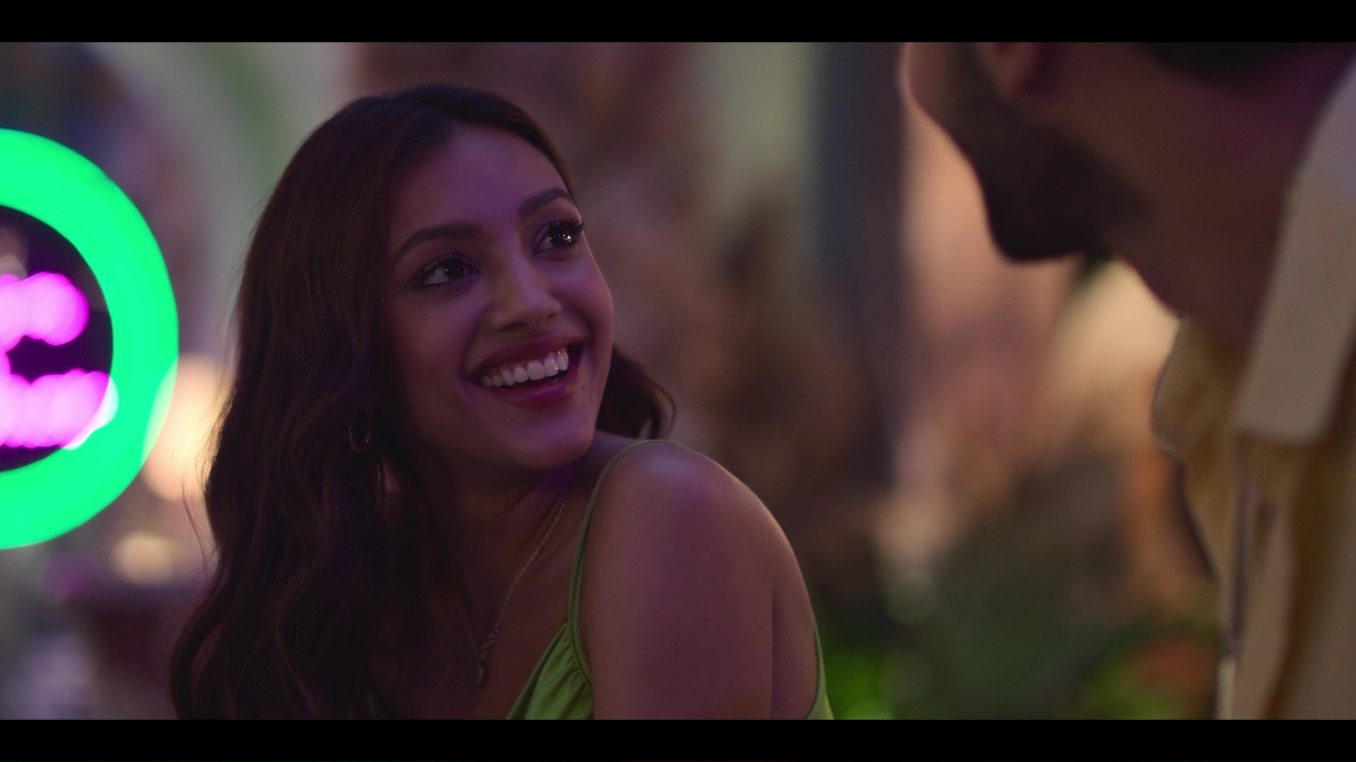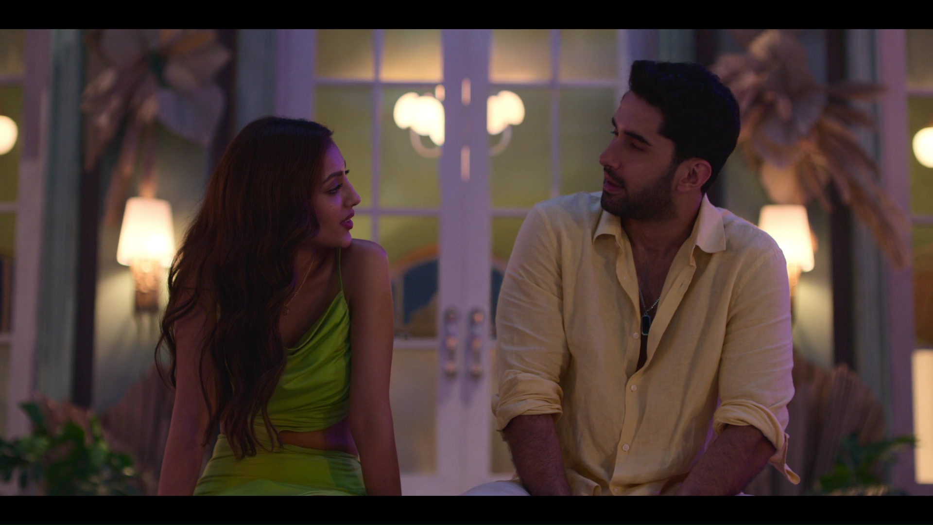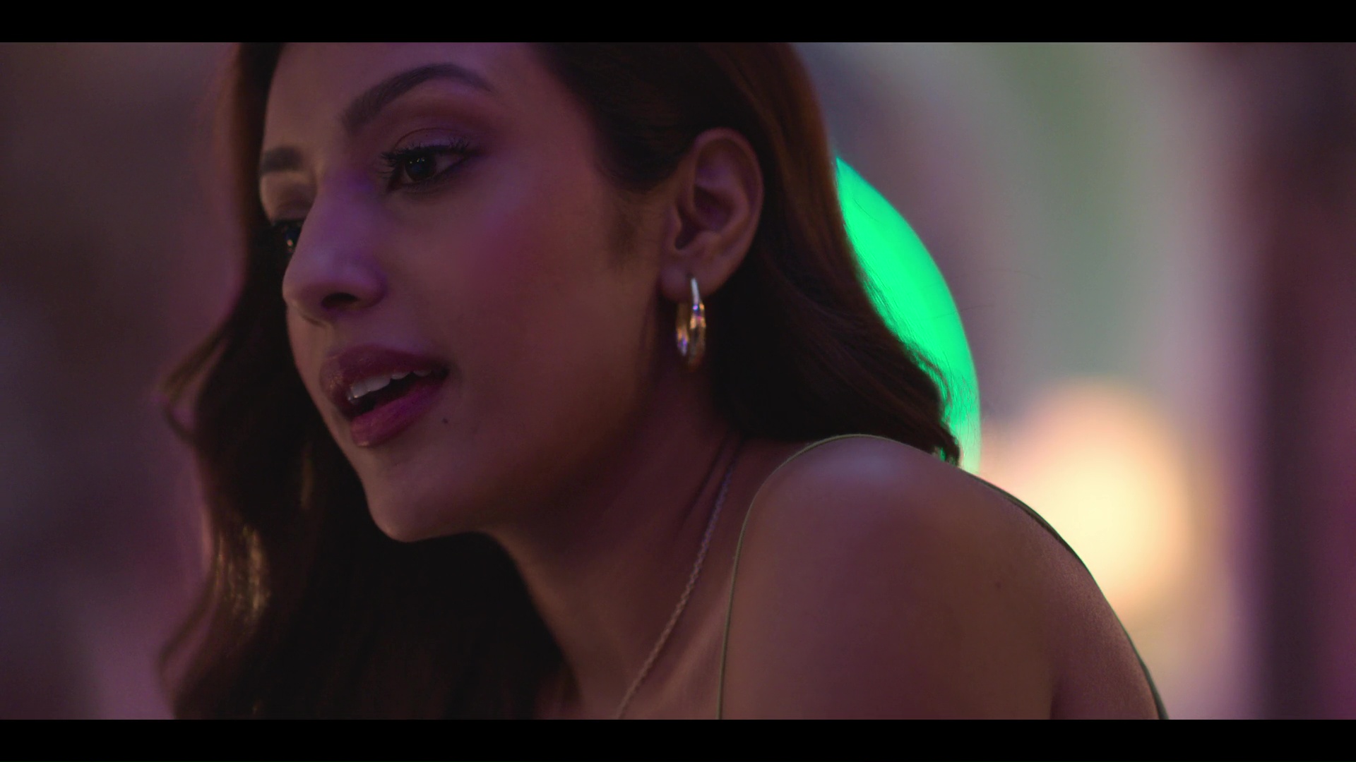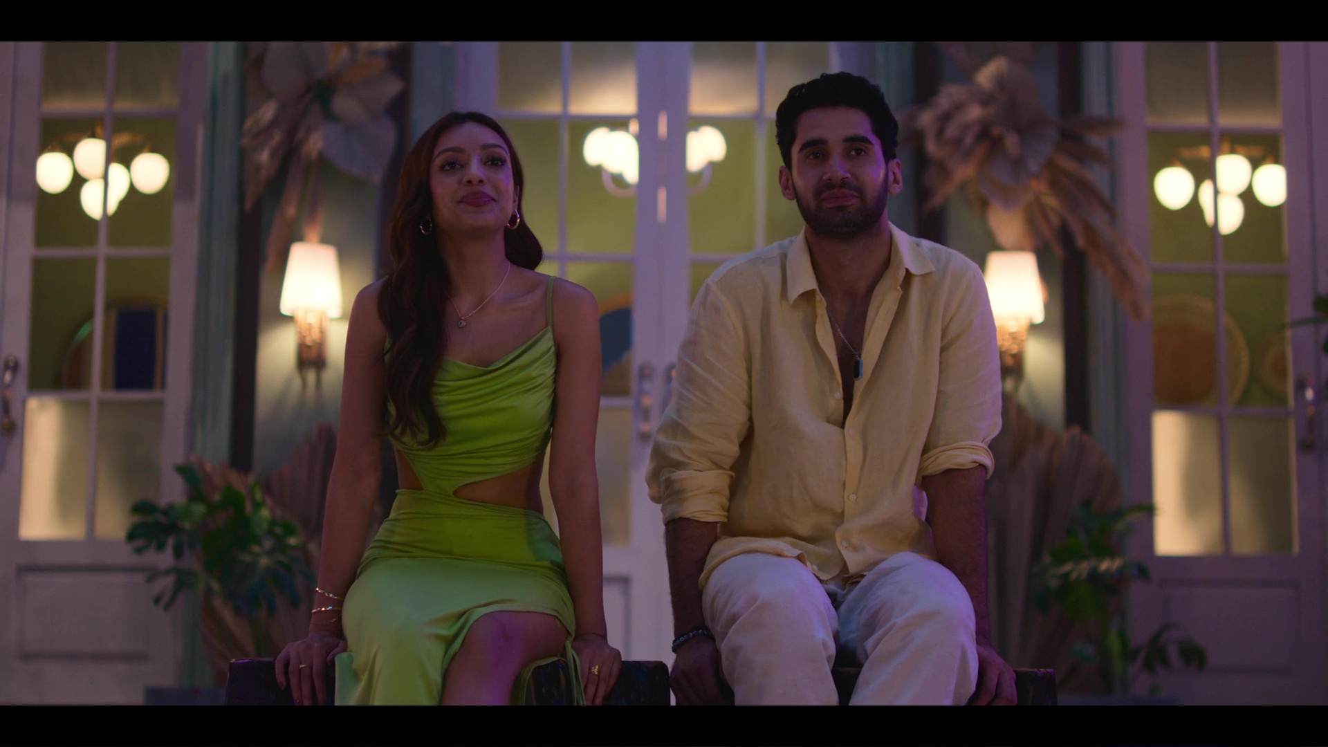 The Ba***ds Of Bollywood screencaps from the epsidoe “Barbaad Mohabbat”. Sahher Bambba is seen as the character Karishma Talwar in the show. She wears a ruched light green silk like dress.