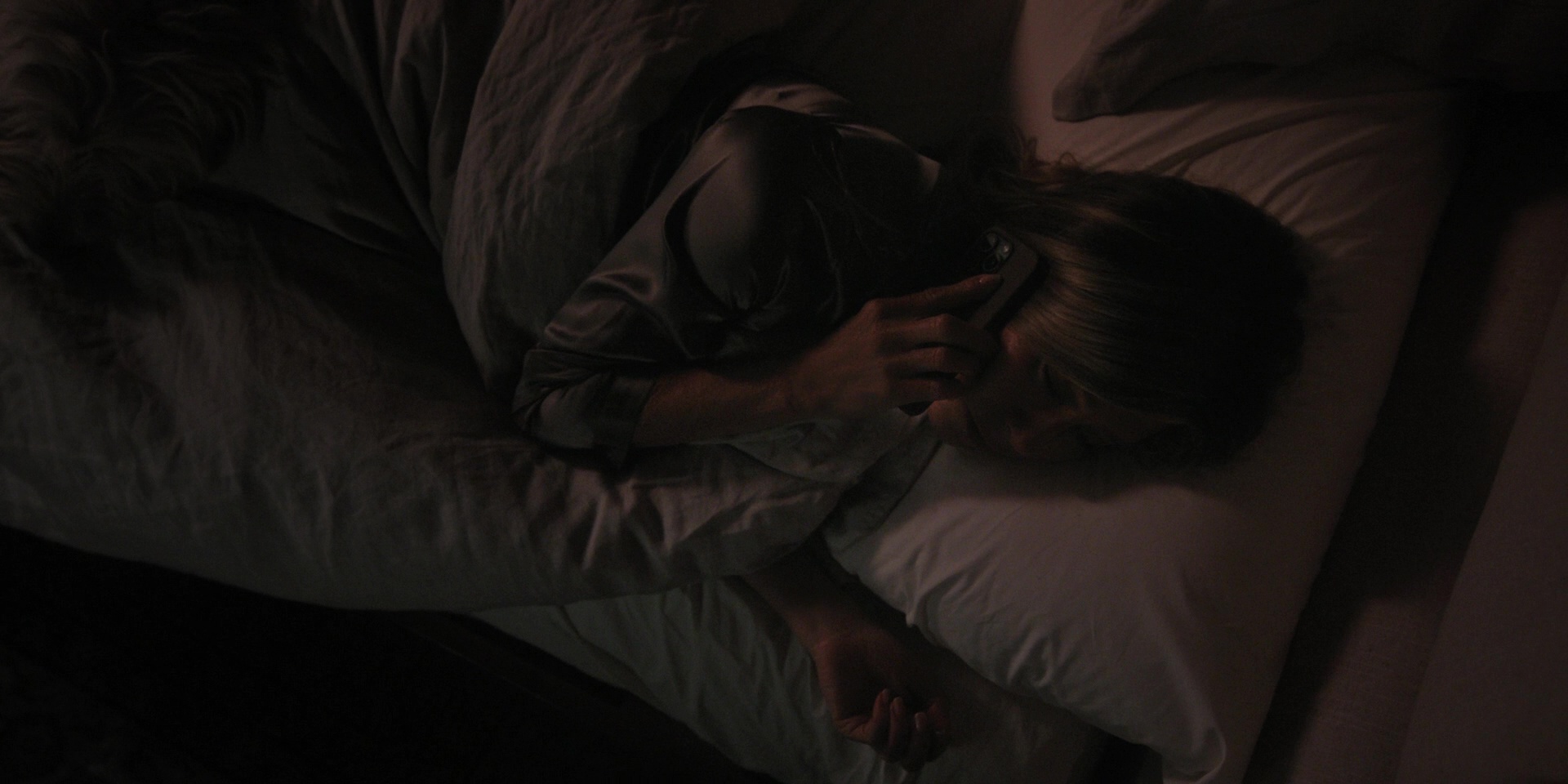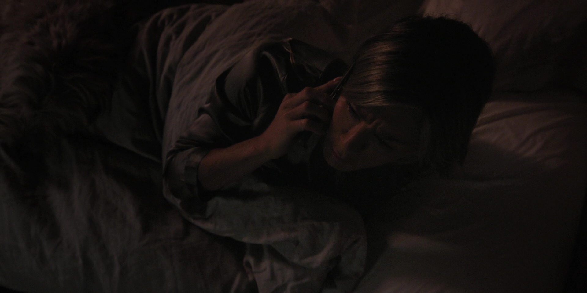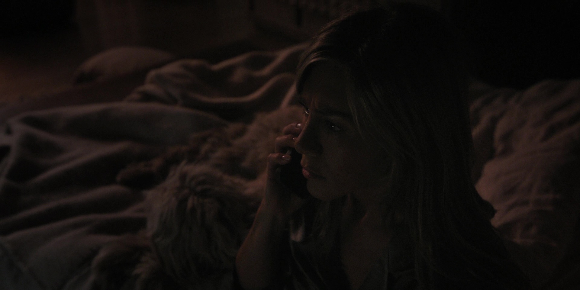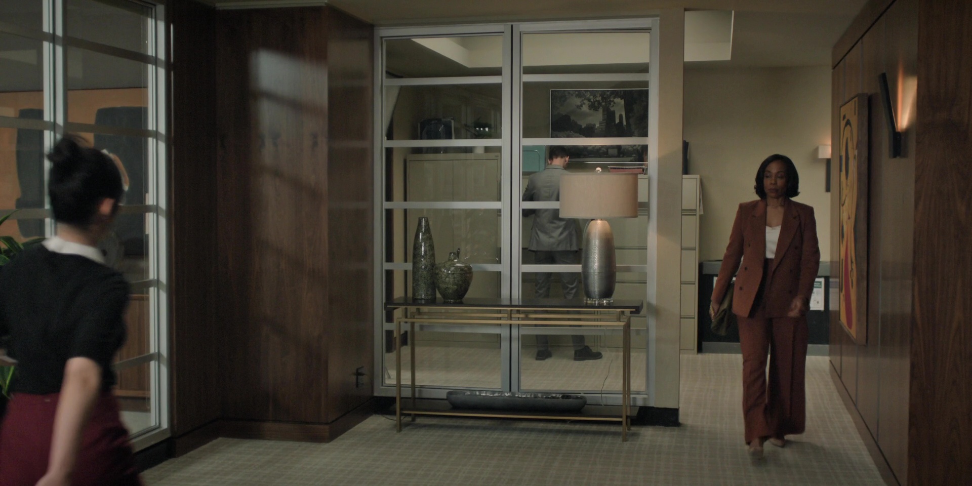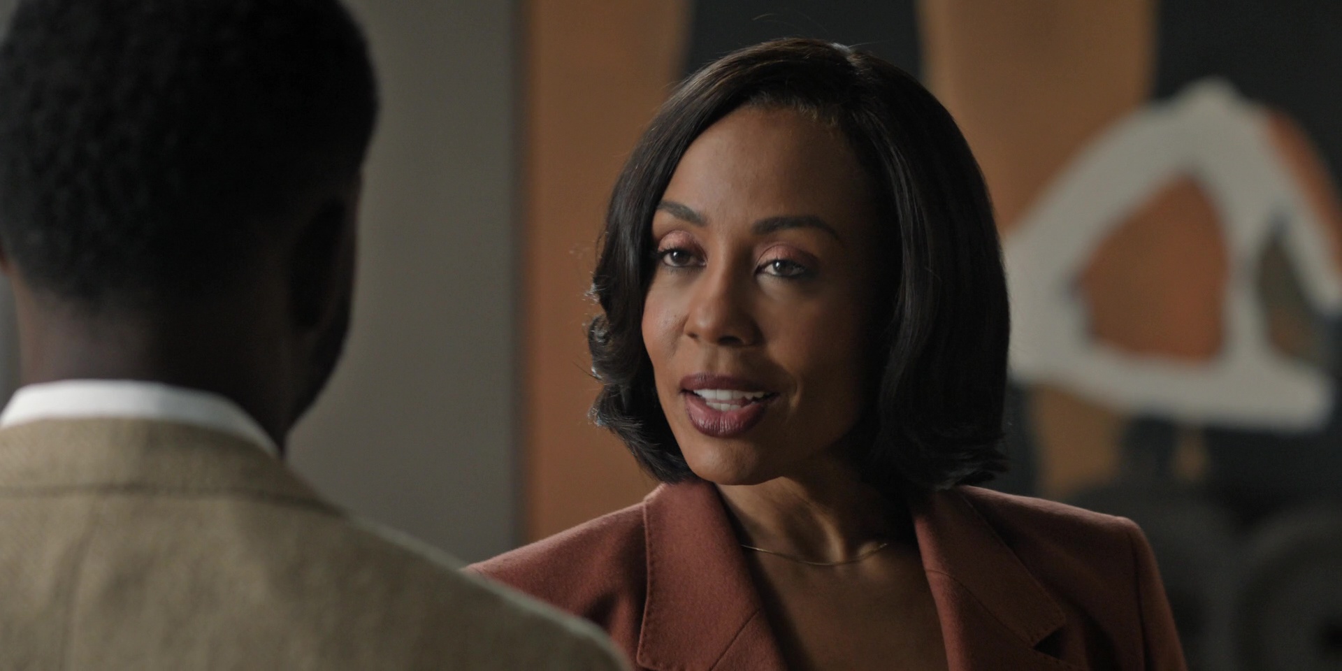 The Morning Show screencaps from the season four episode “Knowing Violation”. Jennifer Aniston wears a pair of gold satin pyjamas. Karen Pittman appears in a white satin camisole top.
