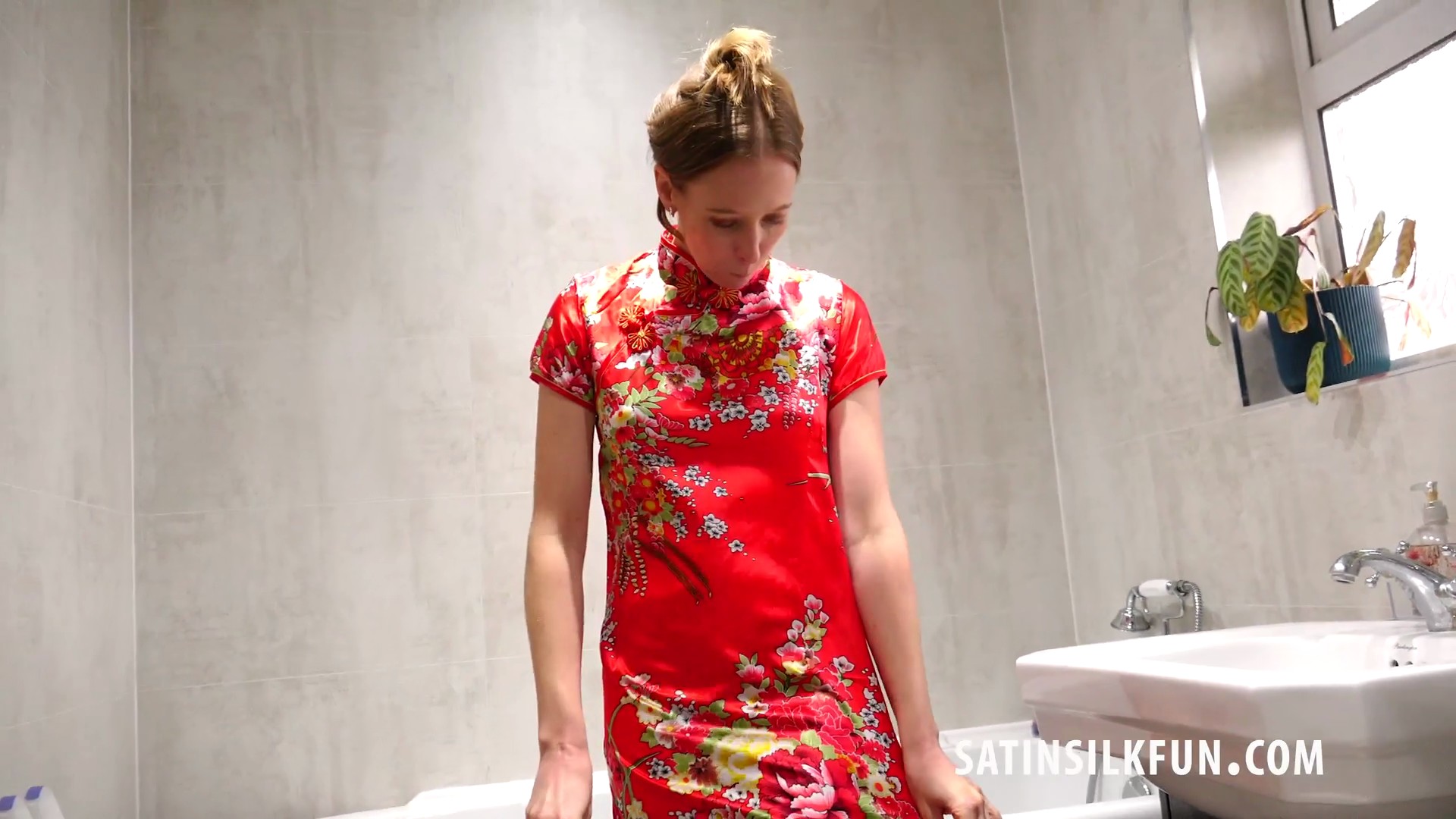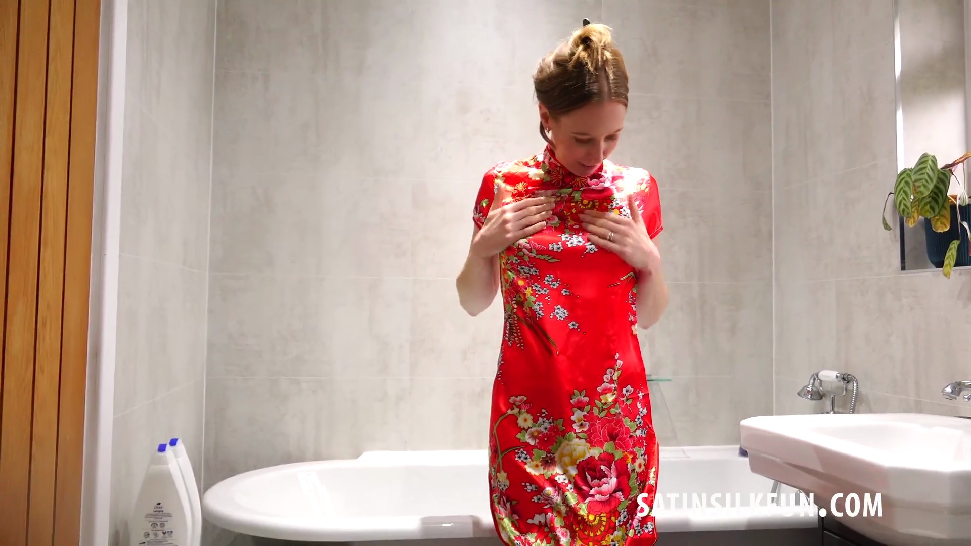 Satin Silk Fun September 2025 photos and images. Poppy stars in a pair of light purple satin pyjamas. Kitty Quinzell models in pink satin. Lottie R wears a short red satin cheongsam in a bath. Siobhan Graves appears in a pink satin cheongsam. Melissa Tongue shoots in a gold satin nightdress. Kelsey models in dark red satin nightwear. Brianna Olivia is seen in a silk and lace slip. Alicia wears a black satin long sleeve dress. Lottie Lalay has a shower in blue satin dress. Louise Jones shoots in dark purple satin. Hattie Grace shoots in a blue, red and white satiny cheongsam. Samantha wears a mint green satin chemise.